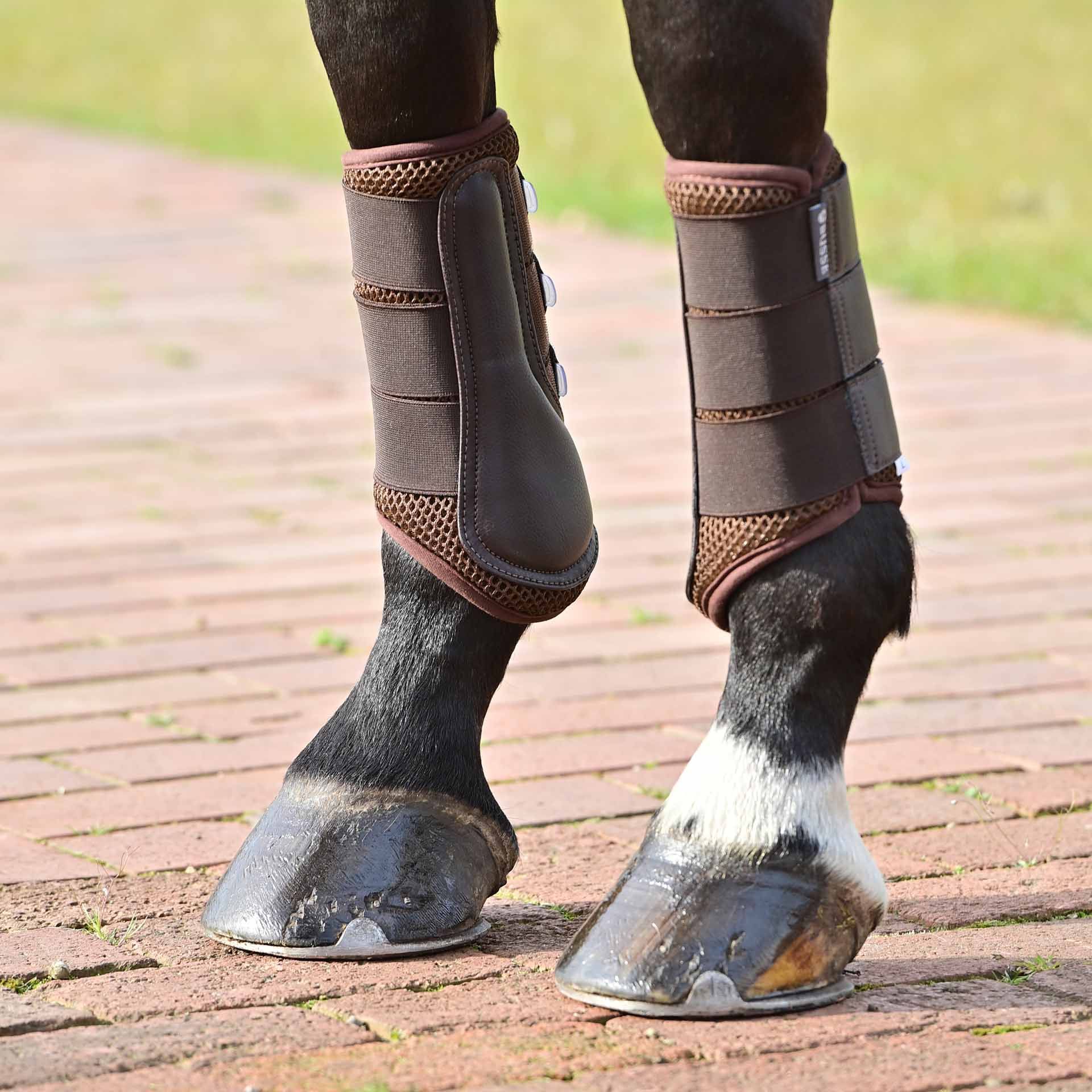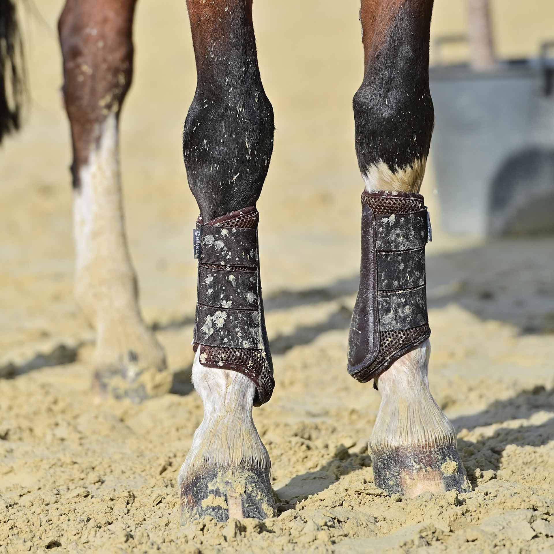 Gefertigt aus dreidimensionalem Synthetik-Mesh-Gewebe, sorgen diese Gamaschen für optimalen Schlagschutz und ausgezeichnete luftzirkulierende Eigenschaften. Ein fellerprobte Gewebeauflage garantiert maximalen Komfort und rutschsichere Positionierung bei sowohl geschorenen als auch ungeschorenen Pferden bei jeder Witterung und ideal zur Vermeidung von Überhitzung.
