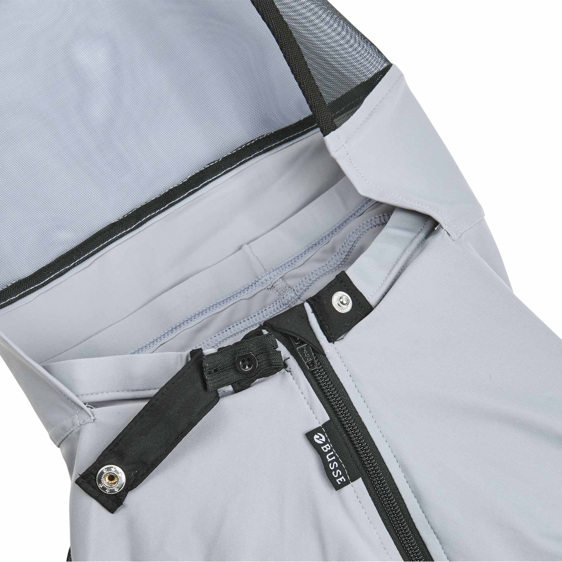 Die BUSSE Fliegenmaske TWIN FIT FLEXI PLUS zeichnet sich durch ihre patentierte, reversible Umfangseinstellung, den formstabilen Augen- und Nüsternschutz und das strapazierfähige, atmungsaktive Nylon/Lycra®-Funktionsmaterial aus. Zudem verfügt sie über einen weichen Ohrenschutz aus Polyestermaterial und erleichtert das Anlegen durch einen Reißverschluss entlang des Unterkiefers.