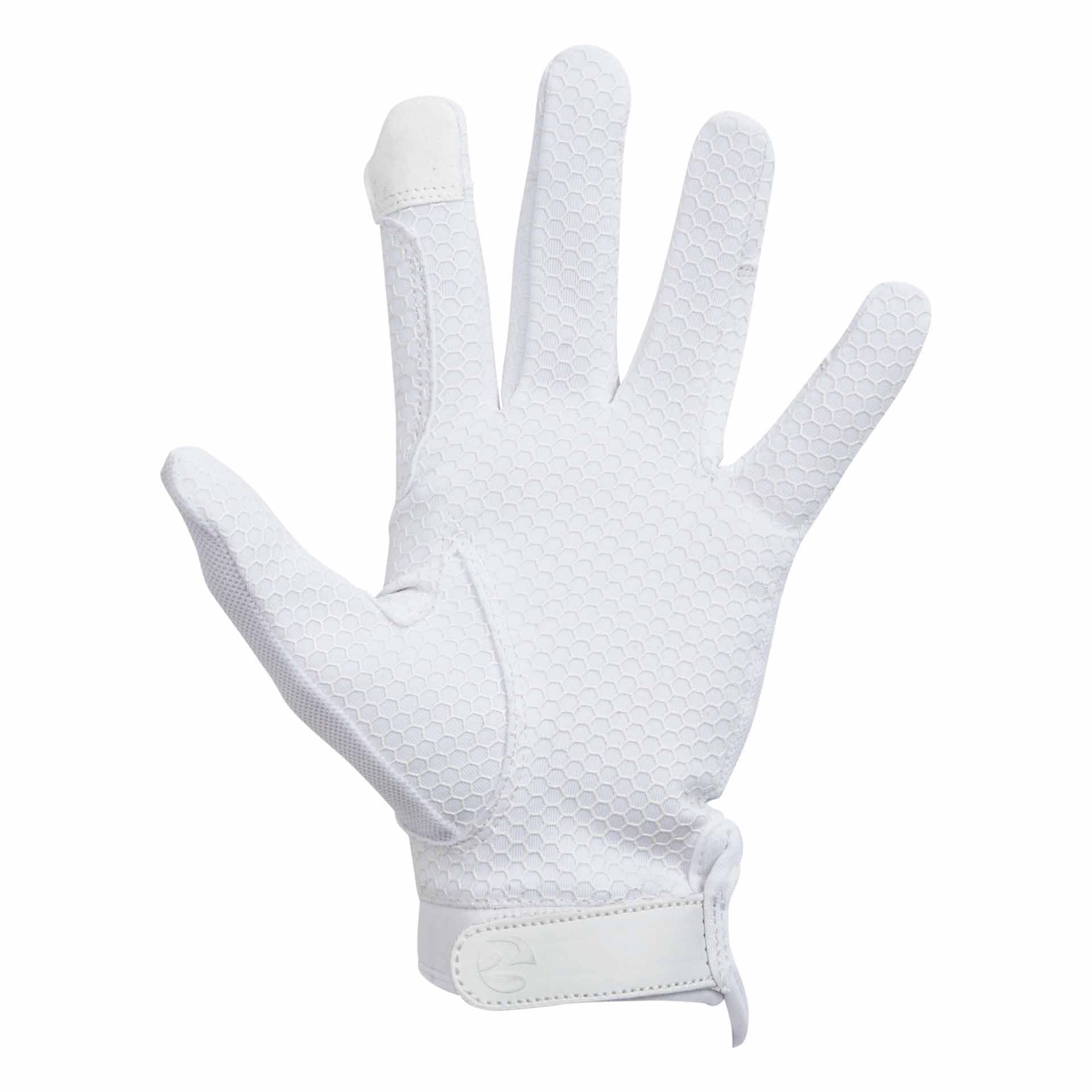 Die Handoberfläche der Handschuhe ist aus atmungsaktivem, engmaschigem Mesh-Material gefertigt, das für ein stets angenehm luftiges Tragegefühl sorgt. Der wenig auftragende Silikonprint auf der gesamten Handinnenfläche bietet einen leichten Grip für gefühlvolle Zügelhilfen beim Reiten.