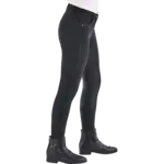 Die Reithose zeichnet sich durch ihr klassisches Design mit sportlichen Details aus. Sie hat zwei große Einschubtaschen vorne, die jeweils mit einer kleinen Niete besetzt sind, sowie ein Silikonprint-Logo Ton-in-Ton über dem Besatz. Mit ihrem klassischen Schnitt, mittlerer Taillenhöhe, Elastikbund mit Gürtelschlaufen und Komfortbeinabschluss mit Elastikeinsatz bietet sie eine hervorragende Passform und Tragekomfort.