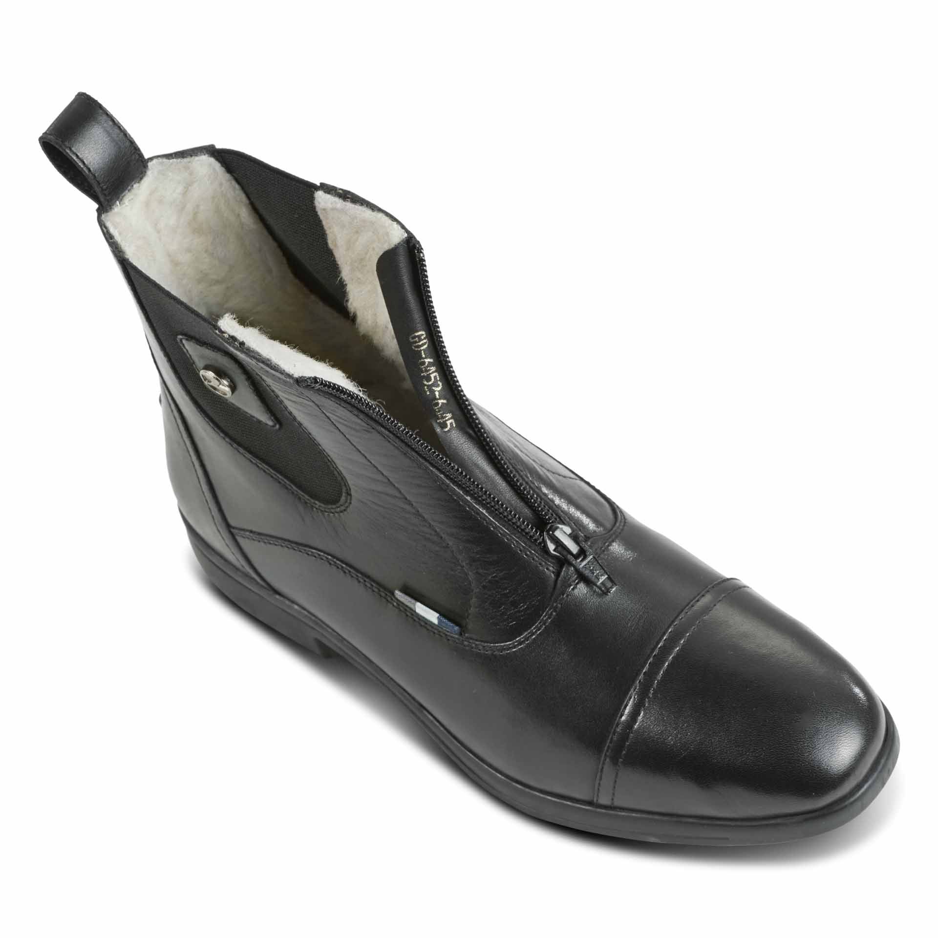 Eine innovative Gummi-Profilsohle mit spezieller Reitfunktion, implementierter Stoßabsorbierung im Fersenbereich und Mittelfußverstärkung bietet sicheren Halt und Komfort. Die herausnehmbare, vorgeformte Innensohle mit Wollfleecelining ist extra stoßdämpfend und druckmindernd und sorgt für optimalen ganztägigen Tragekomfort.