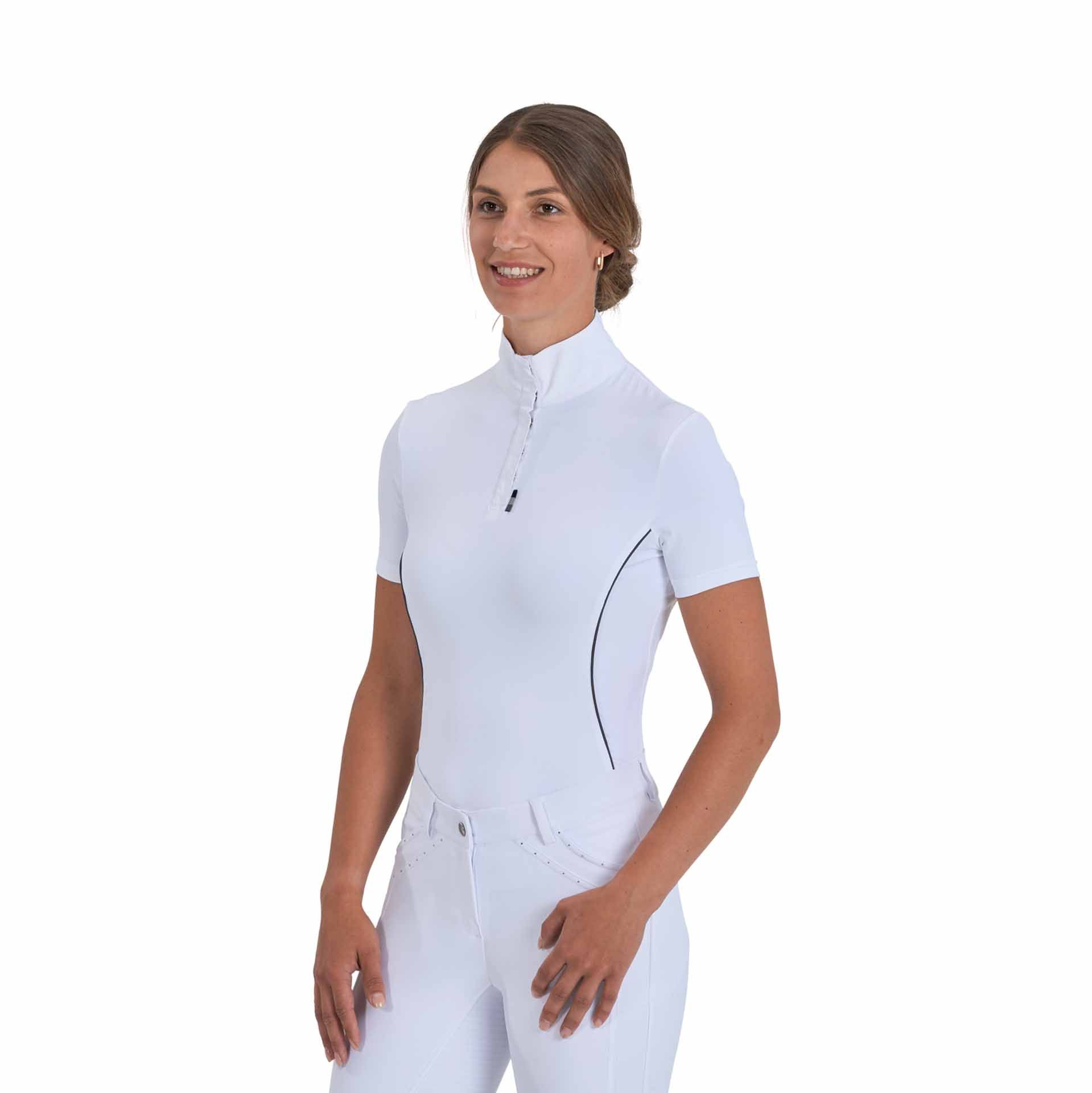 Das BUSSE Turnier-Shirt VILLENA ist ein sportlich-dynamisches Turnier-Shirt, das durch seine figurbetonten Teilungsnähte und farblich akzentuierenden Biesen besticht. Es ist die perfekte Wahl für Reiter, die ein funktionales und stilvolles Outfit für Turniere und intensives Training suchen.