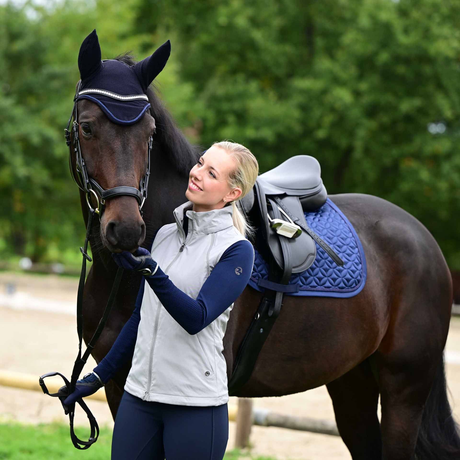 Die BUSSE Jacke PRIA Midlayer ist eine figurbetonende Trainingsjacke, die sich auch hervorragend als Zwischenschicht (Midlayer) unter leichten Outdoorjacken eignet. Sie bietet eine optimale Kombination aus Funktionalität und Stil für Reiterinnen.
