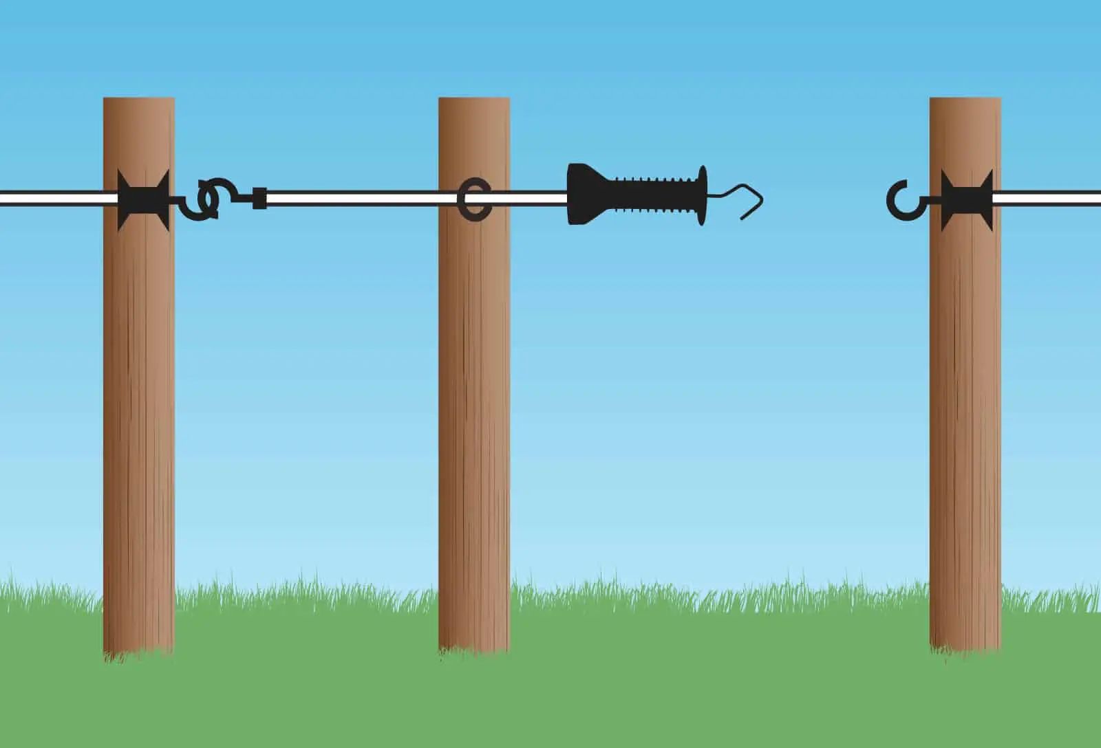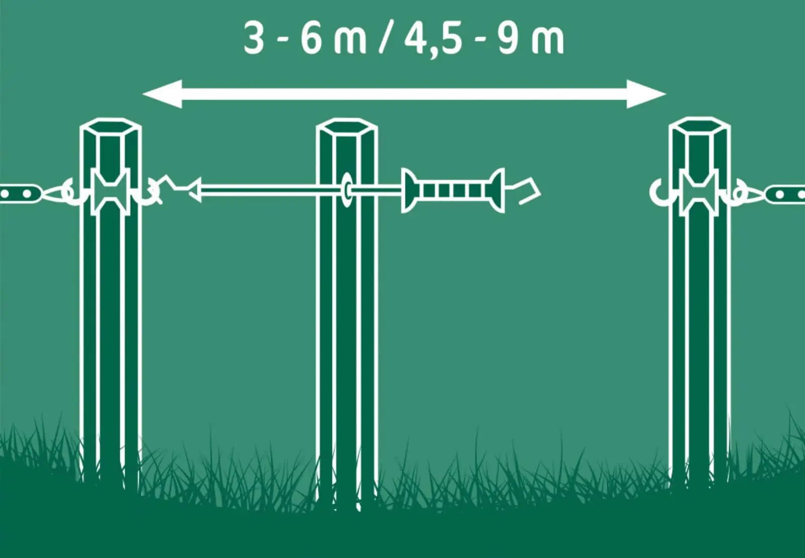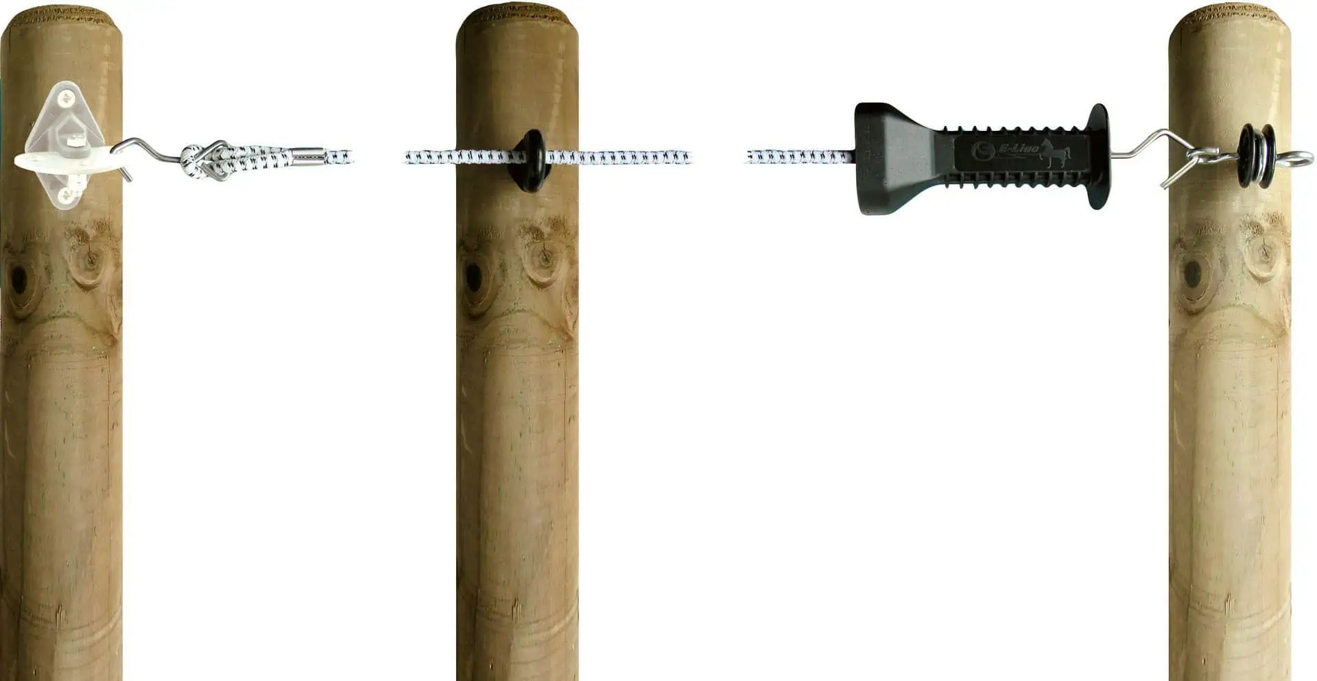 Die E-line Elektrozauntüre verfügt zudem über einen Haken aus rostfreiem Stahl. Eine korrekte Montage des Torsystems erfolgt unter Verwendung von 3 Pfählen. Es ist ausziehbar auf etwa die doppelte Länge und bietet daher zusätzliche Flexibilität bei der Gestaltung Ihres Zauns.