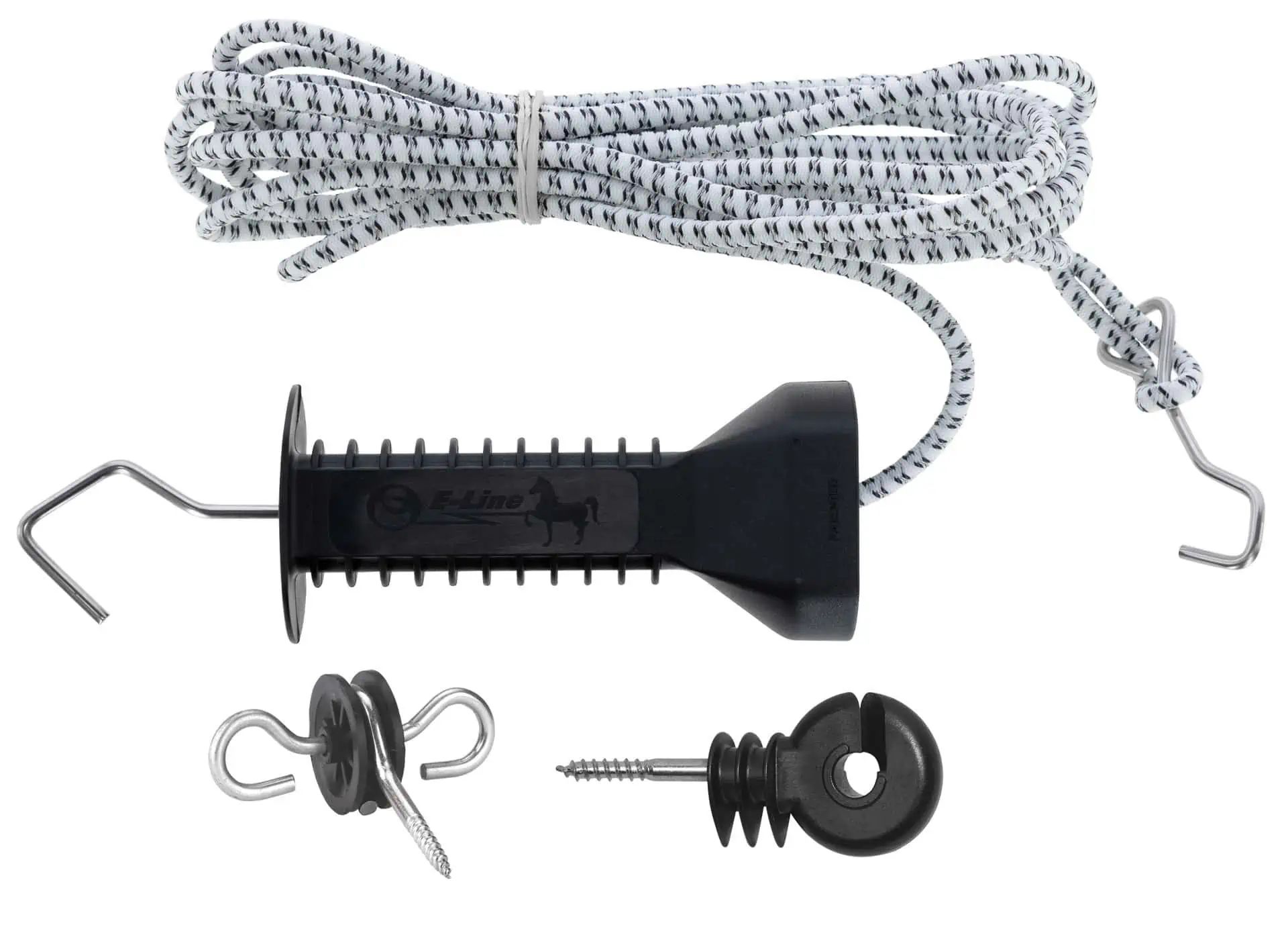 Die E-line Elektrozauntüre ist eine praktische und handliche Lösung für die Öffnungen im Zaun. Sie beinhaltet eine leitfähige elastische Schnur, einen rostfreien Haken und ist ausziehbar auf die doppelte Länge.