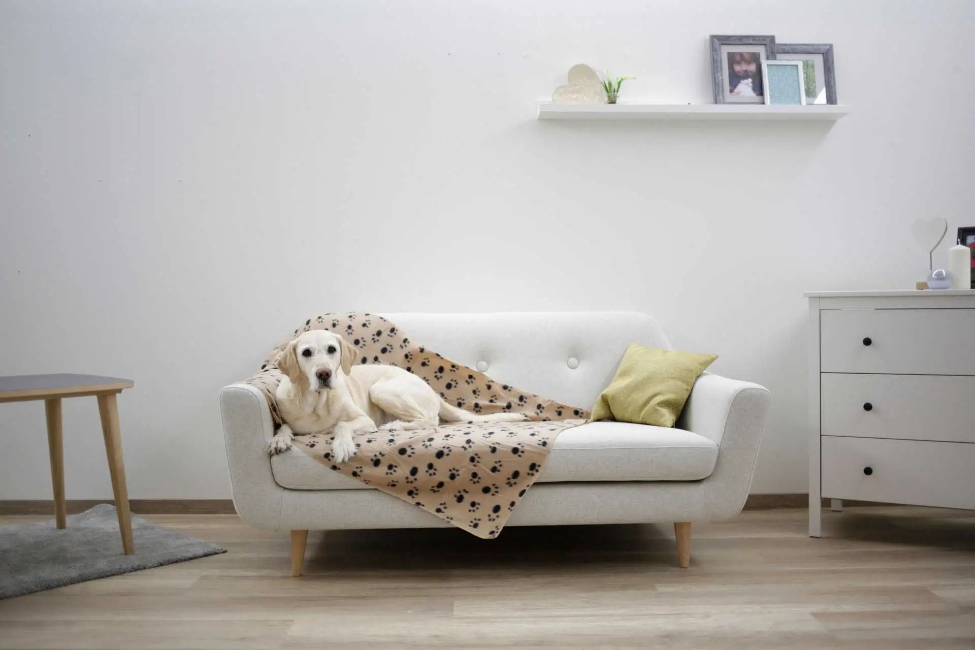 Hundedecke Stella 140x100cm beige mit Pfoten - Schützen Sie Ihre Möbel und Böden