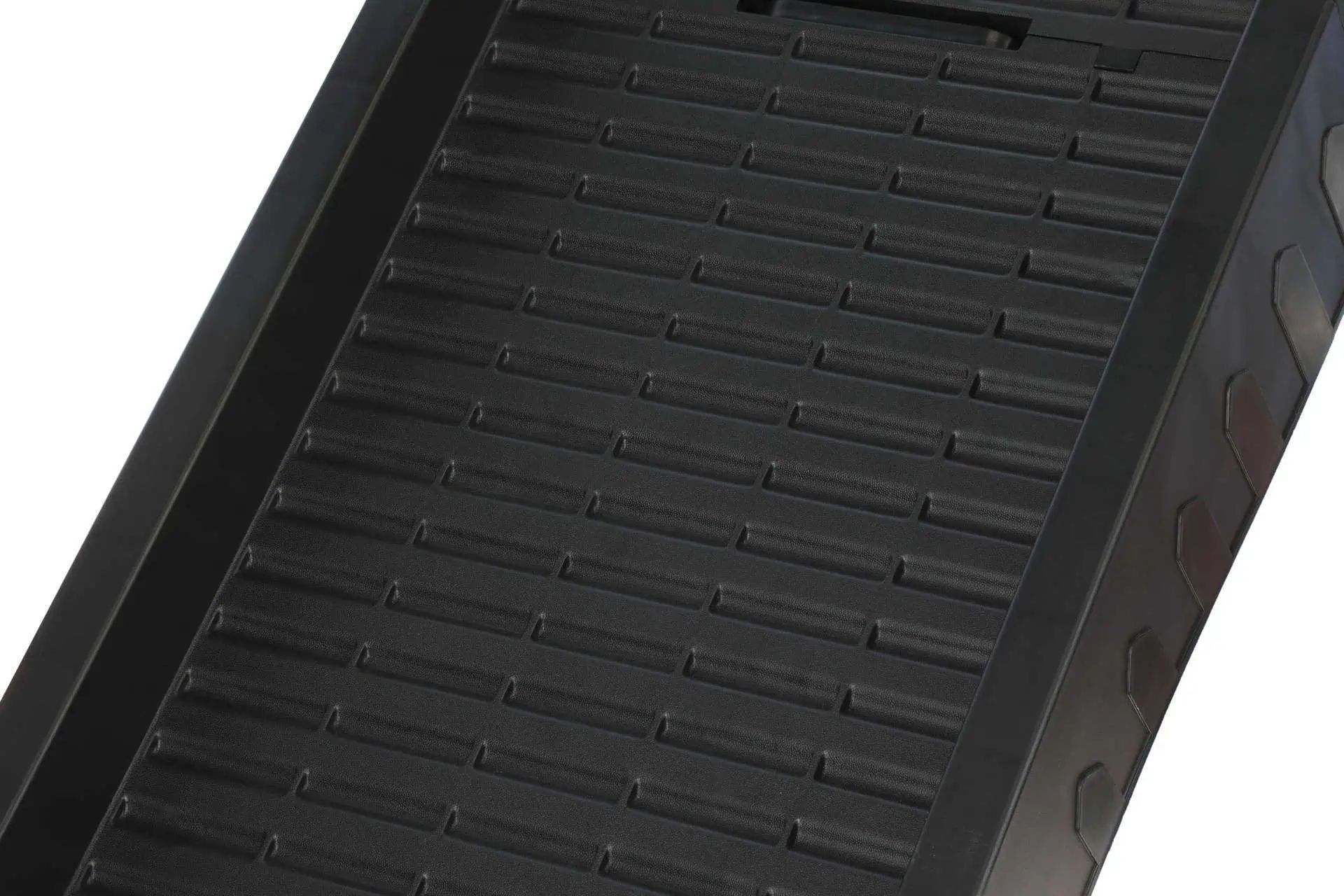 Die Rampe ist 3-fach zusammenklappbar. Sie können sie einfach auf die gewünschte Größe zusammenklappen und mit dem Tragegriff transportieren.