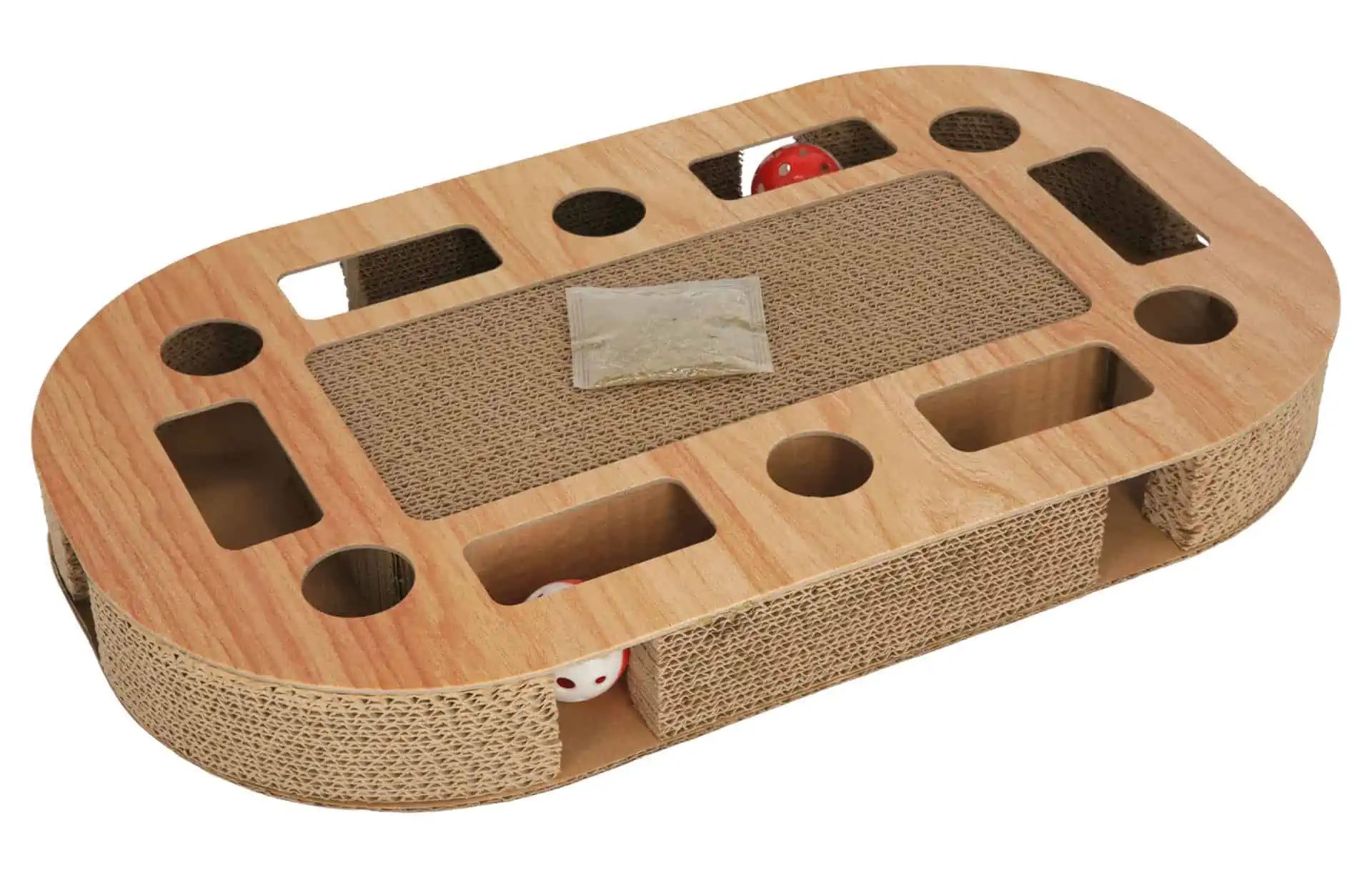 Das Katzenkratzbrett Ovalo ist ein multifunktionales Spielzeug, das Ihrer Katze nicht nur hilft, ihre natürlichen Kratzinstinkte auszuleben, sondern sie auch stundenlang unterhält. Die eingebauten Plastikkugeln mit Glöckchen fordern Ihre Katze zum Spielen und Kratzen auf und helfen dabei, ihre körperliche und geistige Gesundheit zu fördern.