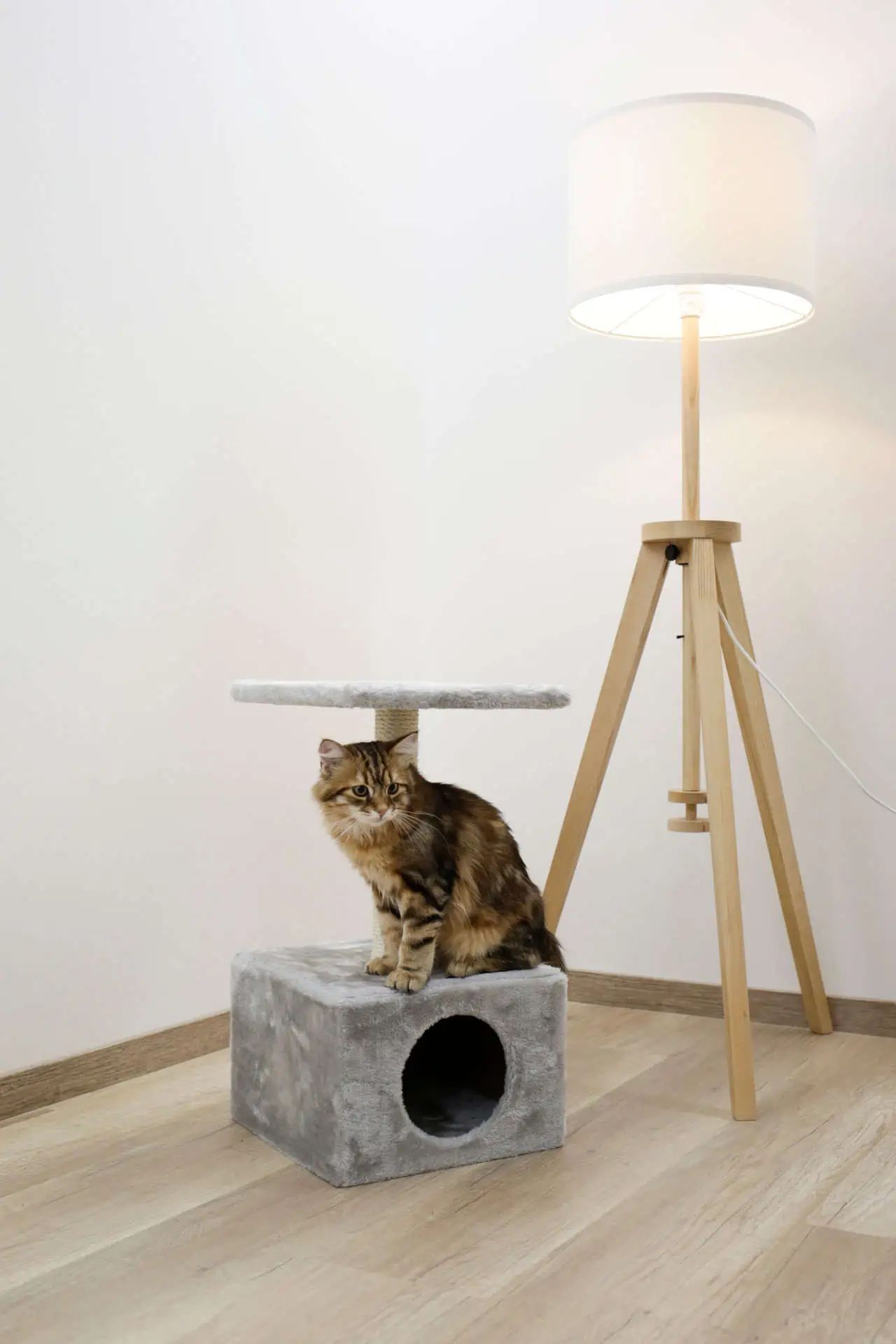 Der Kratzbaum AMETHYST grau eignet sich besonders für Katzenbesitzer, die in einem Apartment oder einer kleineren Wohnung leben und nicht viel Platz für größere Katzenmöbel haben.