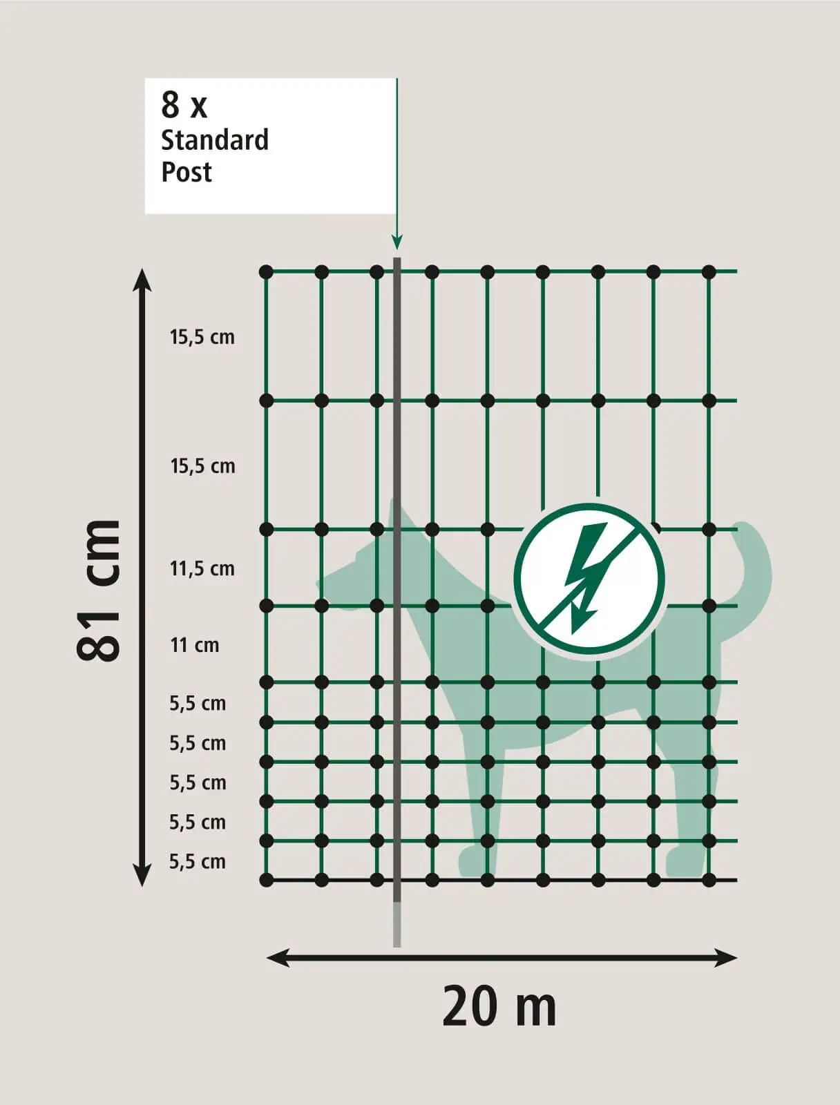 Sicherheit steht an erster Stelle: Das Netz ist ohne Elektrifizierung und somit ungefährlich für Kinder und Tiere – du kannst ganz beruhigt sein. Die robusten Kunststoffpfähle mit verzinkten Bodennägeln gewährleisten einen sicheren Halt.
