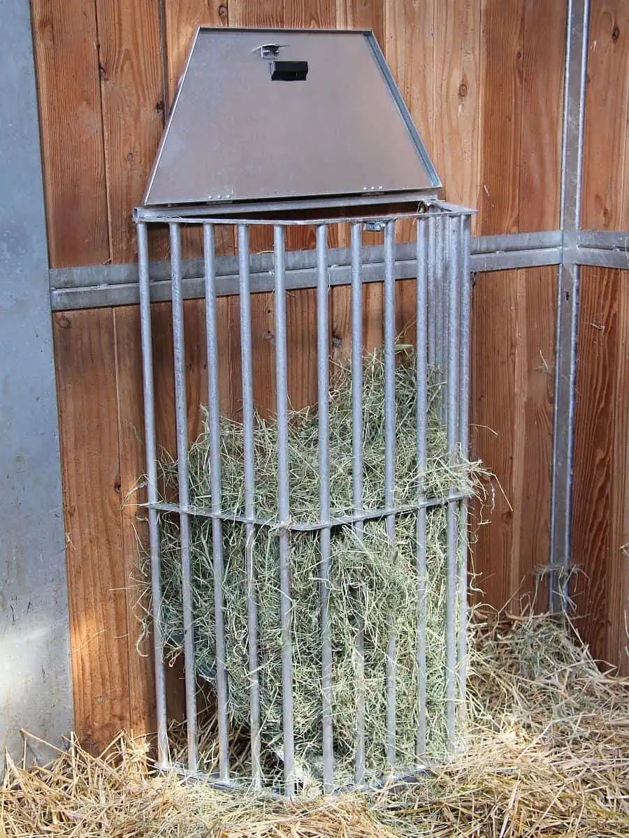 Der mitgelieferte Blechboden sorgt für ein Nachrutschen der Futterration.