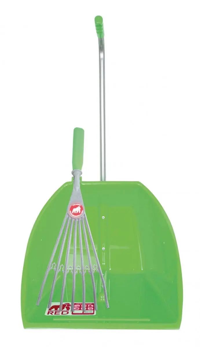 Dieser großzügige Bollensammler zeichnet sich durch eine innovative Konstruktion von Schaufel und zugehöriger Harke aus. Durch diese Neuerungen gestaltet sich die Stallarbeit schneller und einfacher als mit herkömmlichen Mistboys. Besonders hervorzuheben ist die sorgsam durchdachte Entwicklung der Harke. Sie entfernt ausschließlich den Mist, während sie Einstreumaterial und Reithallenboden schont. Daher eignet sie sich besonders gut für alle, die Wert auf eine effektive und dennoch rücksichtsvolle Reinigung legen.