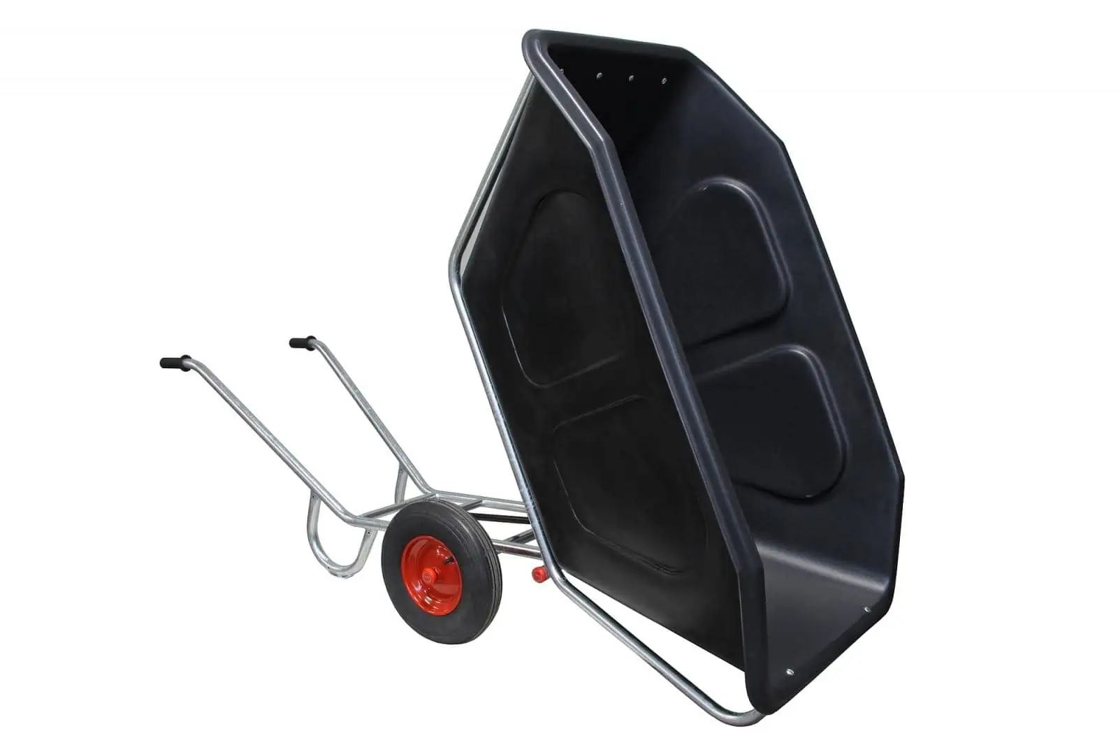 - Robuste Kunststoffmulde und feuerverzinktes Fahrgestell für Langlebigkeit