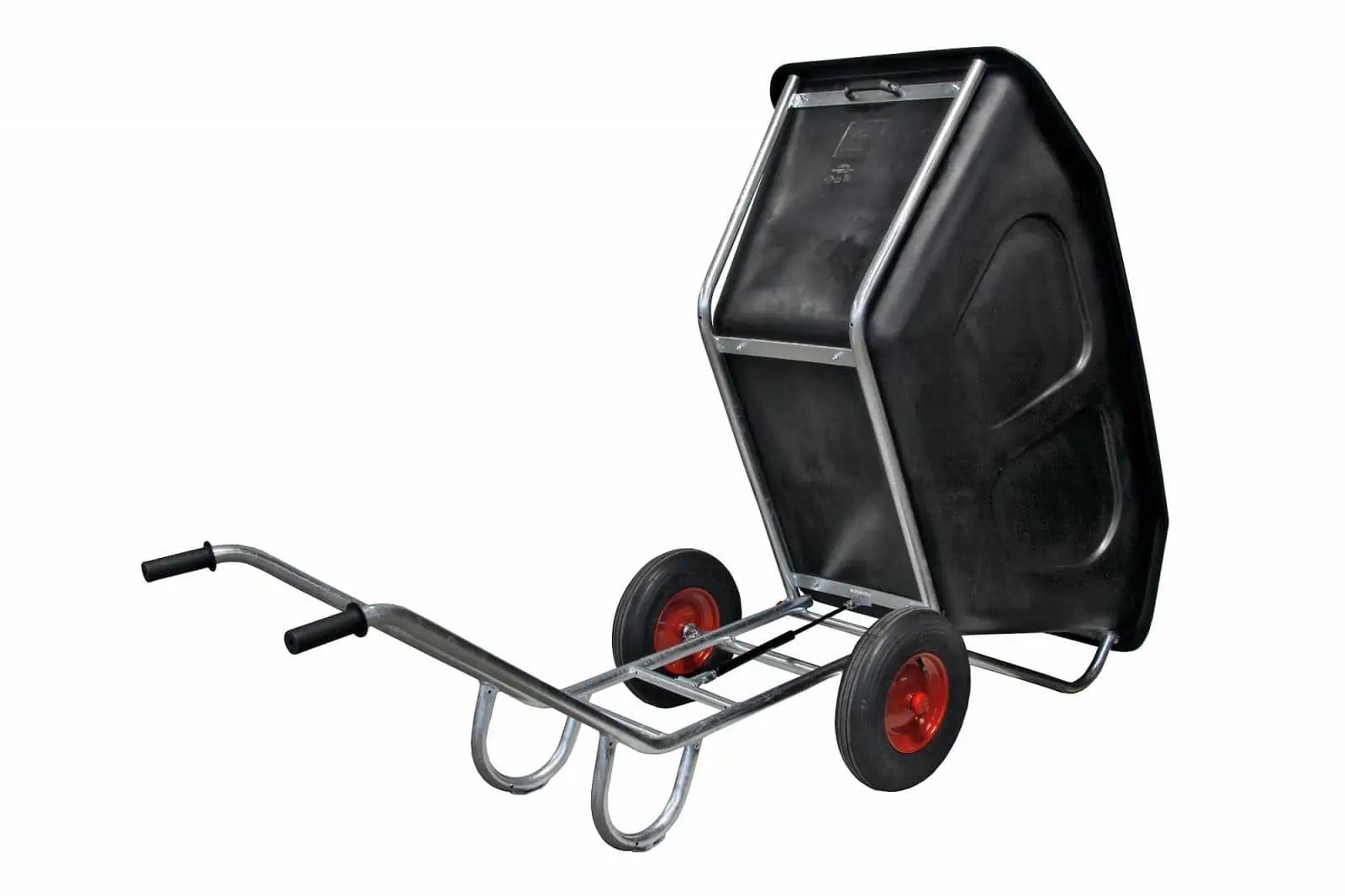 - Besondere Eigenschaften: Robuste Kunststoffmulde, feuerverzinktes Fahrgestell, Gasdruckstoßdämpfer für Kippmechanismus