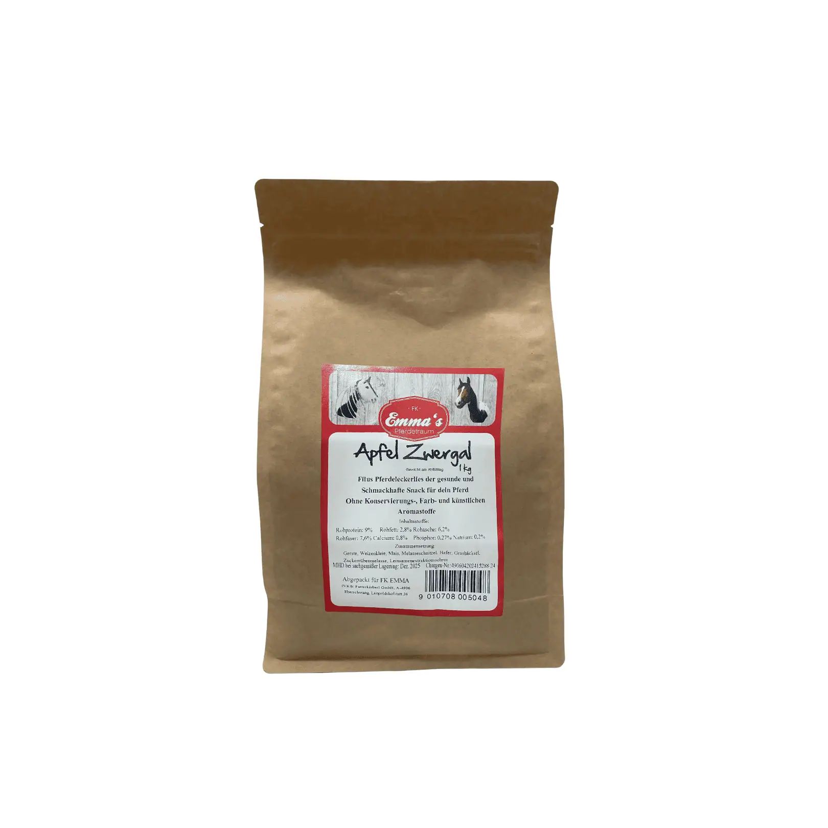 Emmas Pferdeleckerli Apfel Zwergal sind die perfekte Belohnung für dein Pferd. Das Produkt bietet eine 100 % natürliche Zusammensetzung ohne künstliche Farb- und Konservierungsstoffe sowie ohne Geschmacksverstärker, was bedeutet, dass es komplett chemiefrei ist. Hergestellt in einer kleinen Mühle in Deutschland, sind die Leckerli bekannt für ihre hohe Geschmacksintensität und extreme Akzeptanz bei Pferden.