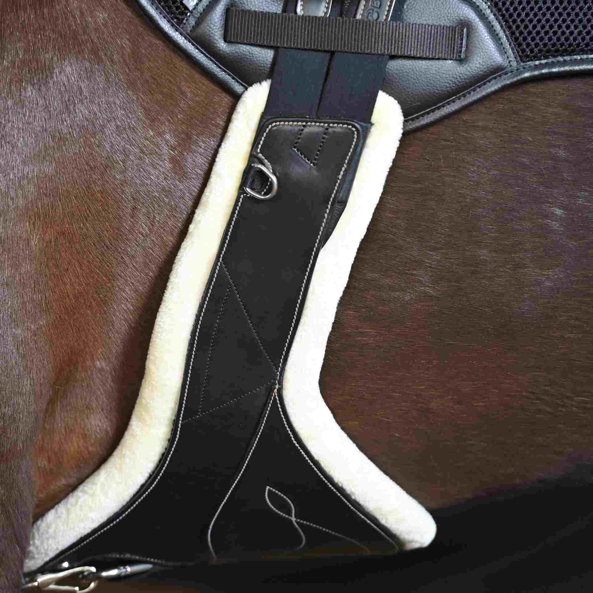 Der Sattelgurt eignet sich hervorragend für alle Pferdetypen, besonders aber für solche mit empfindlicher Haut aufgrund des Fell- und Meshpaddings. Seine anatomische Form bietet auch besonderen Komfort für Pferde, die zu Druckstellen neigen.