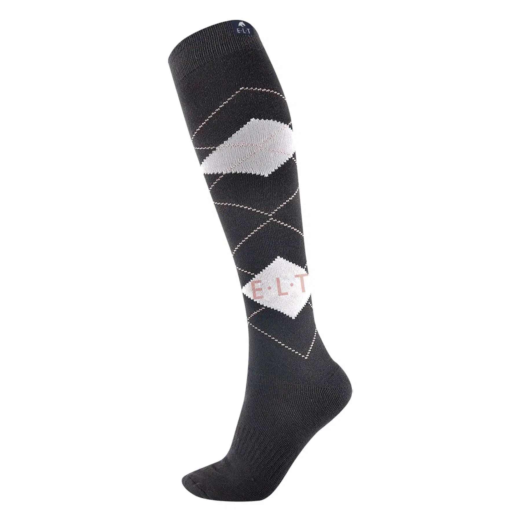 1x ELT Reitsocken Karo, schwarz/milch, S