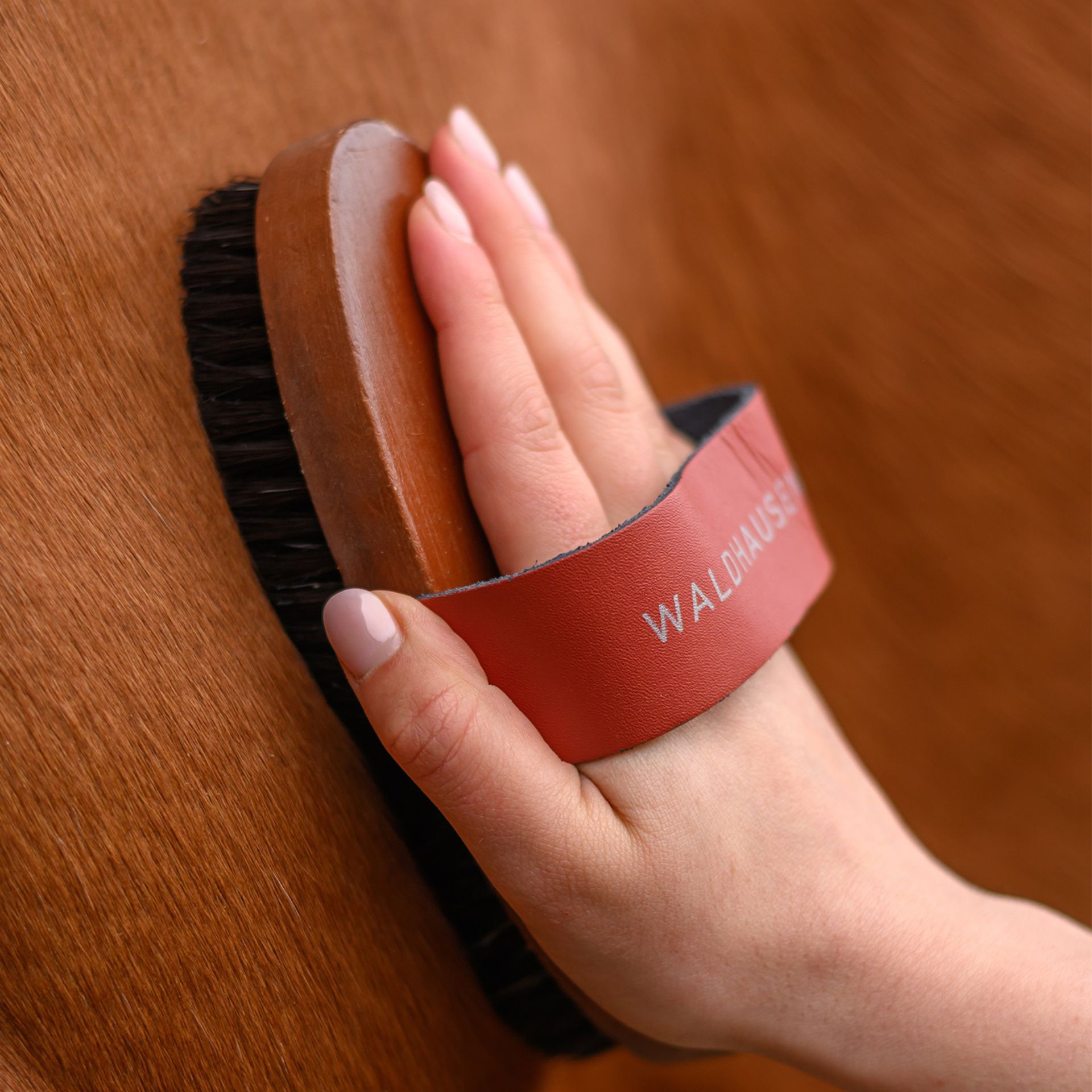 Mit dieser Kardätsche von Waldhausen pflegst du das Fell deines Pferdes schonend und effektiv. Die hochwertigen Wildschweinborsten reinigen sanft und fördern die Durchblutung der Haut. Dein Pferd wird es lieben! Du wirst schnell merken, wie gut sich das Fell nach der Anwendung anfühlt.