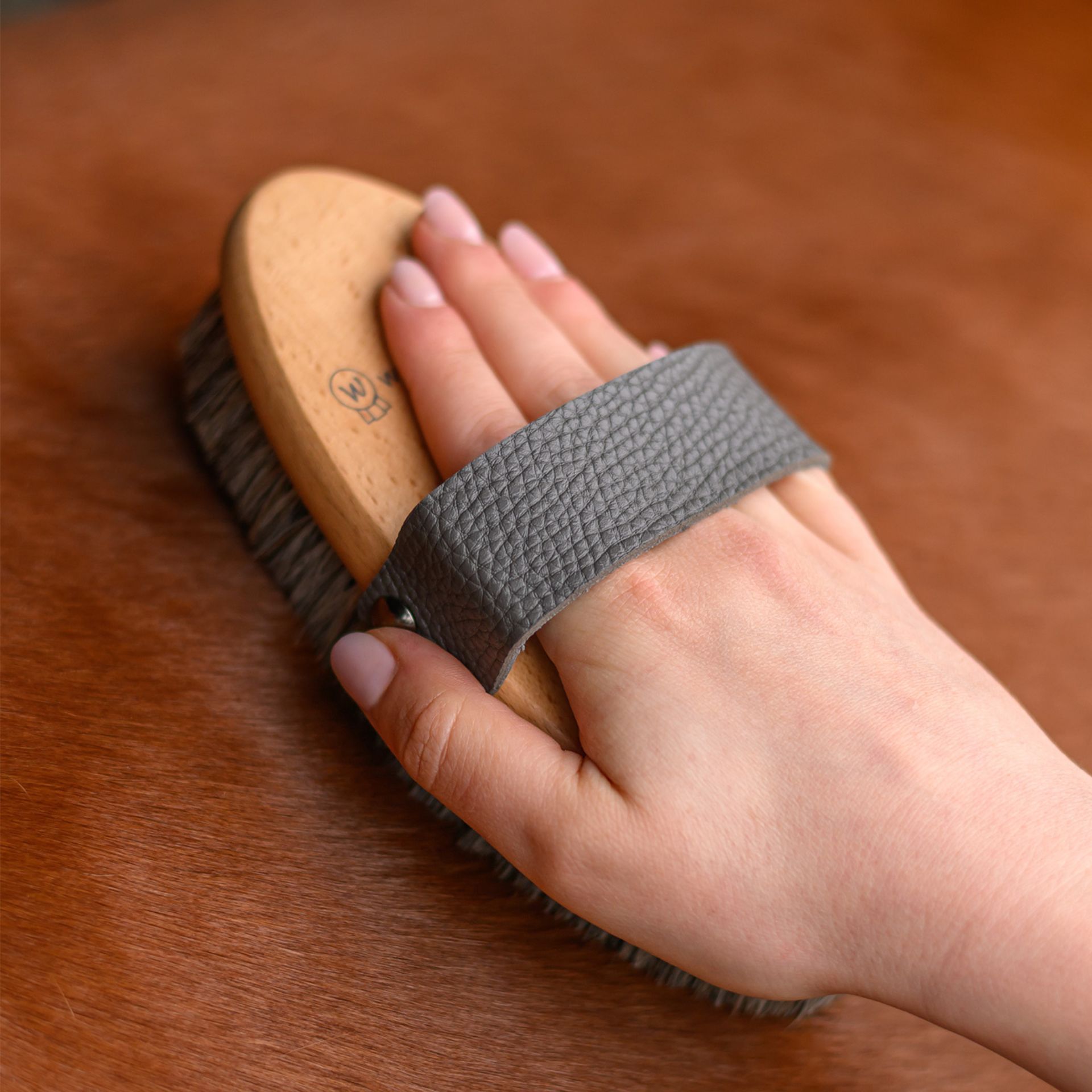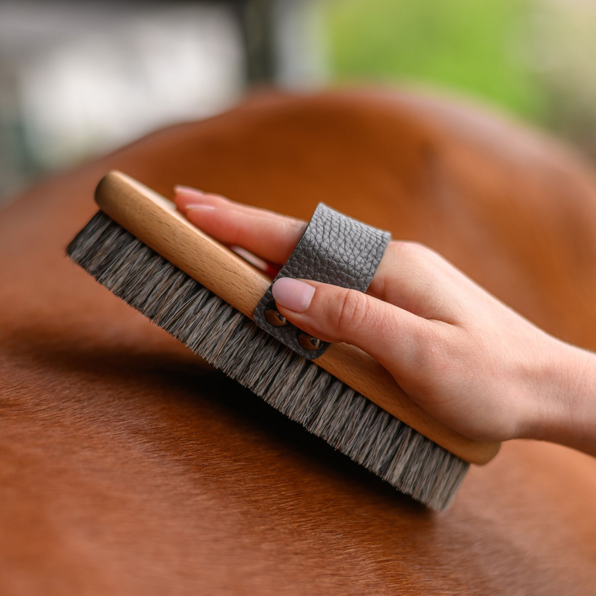 Die Kardätsche besteht aus einer hochwertigen Borstenmischung aus 50% Rosshaar und 50% Kunstfaser.