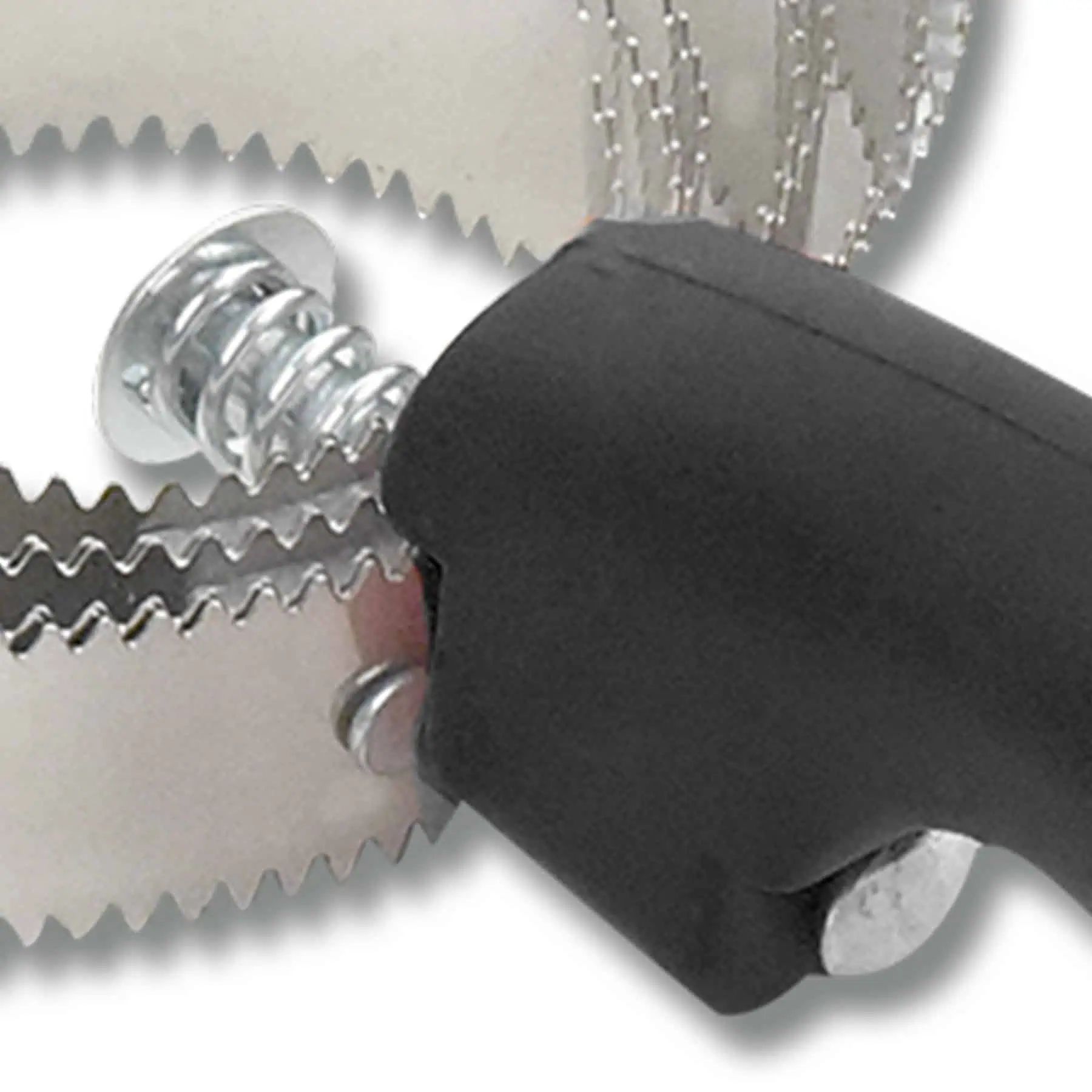 Der ergonomisch geformte Kunststoffgriff liegt angenehm in der Hand und ermöglicht dir ermüdungsfreies Arbeiten. Die hochwertige Verarbeitung aus Edelstahl garantiert eine lange Lebensdauer des Striegels, sodass du lange Freude daran haben wirst.