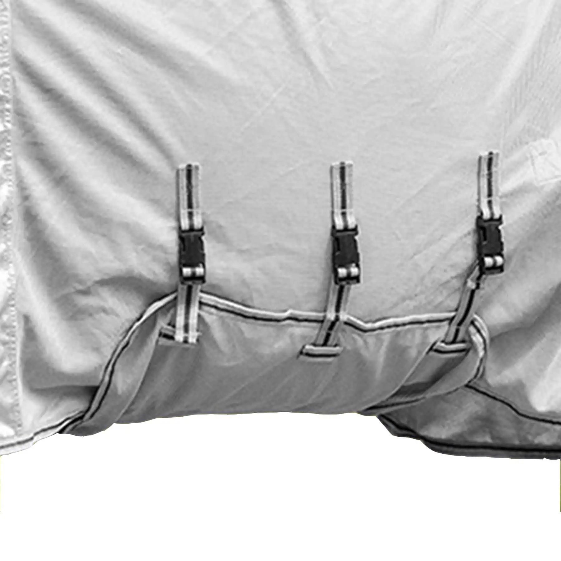 Die feinmaschige Fliegendecke mit Bauch- und Schweiflatz hält selbst die kleinsten Insekten zuverlässig fern. Für optimalen Schutz vor Stichen und Bissen. Der doppelte Frontverschluss, die extra große Gehfalte, die Schweifkordel und die Beinschnüre sorgen für einen perfekten, sicheren Sitz, der auch bei intensiver Bewegung gewährleistet bleibt. So bleibt die Decke zuverlässig an Ort und Stelle.