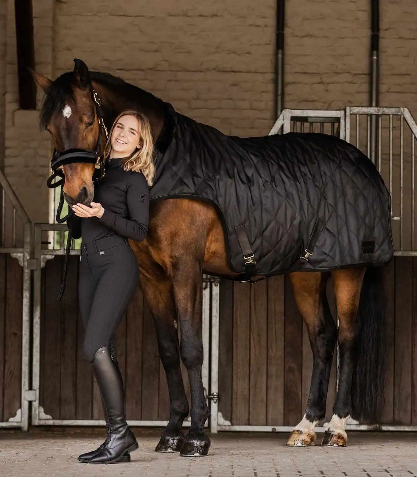 Für einen sicheren und komfortablen Sitz sorgt die längenverstellbare Kreuzbegurtung, der praktische T-Frontverschluss und die Metallösen zur Befestigung eines Schweifriemens. So sitzt die Decke perfekt und verrutscht nicht.