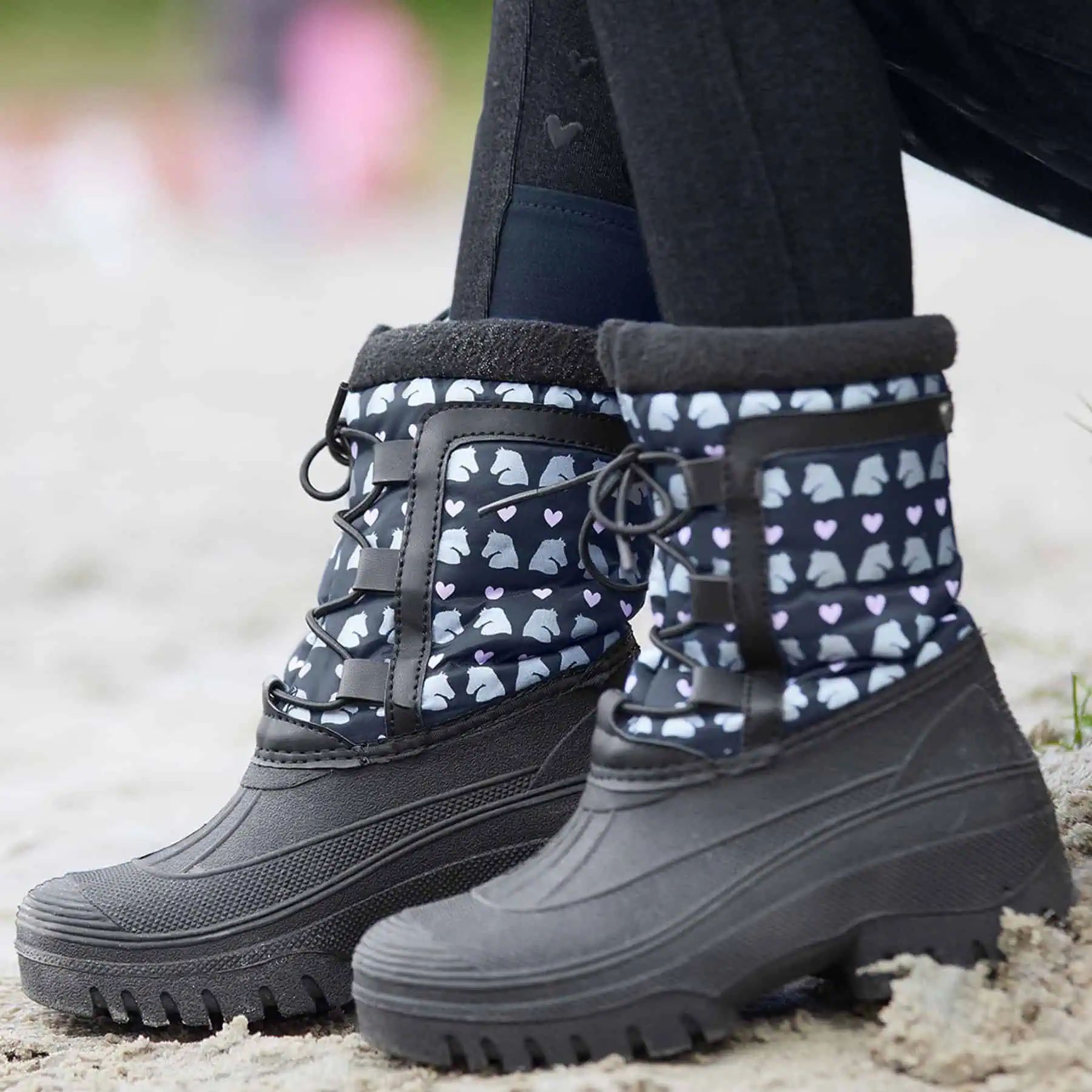 Die rutschfeste Profilsohle sorgt für sicheren Halt auf Schnee und Eis. Die einfache Schnürung ermöglicht schnelles An- und Ausziehen – perfekt für kleine, ungeduldige Füße. Der niedliche All-Over-Print macht den Schuh zum echten Hingucker.