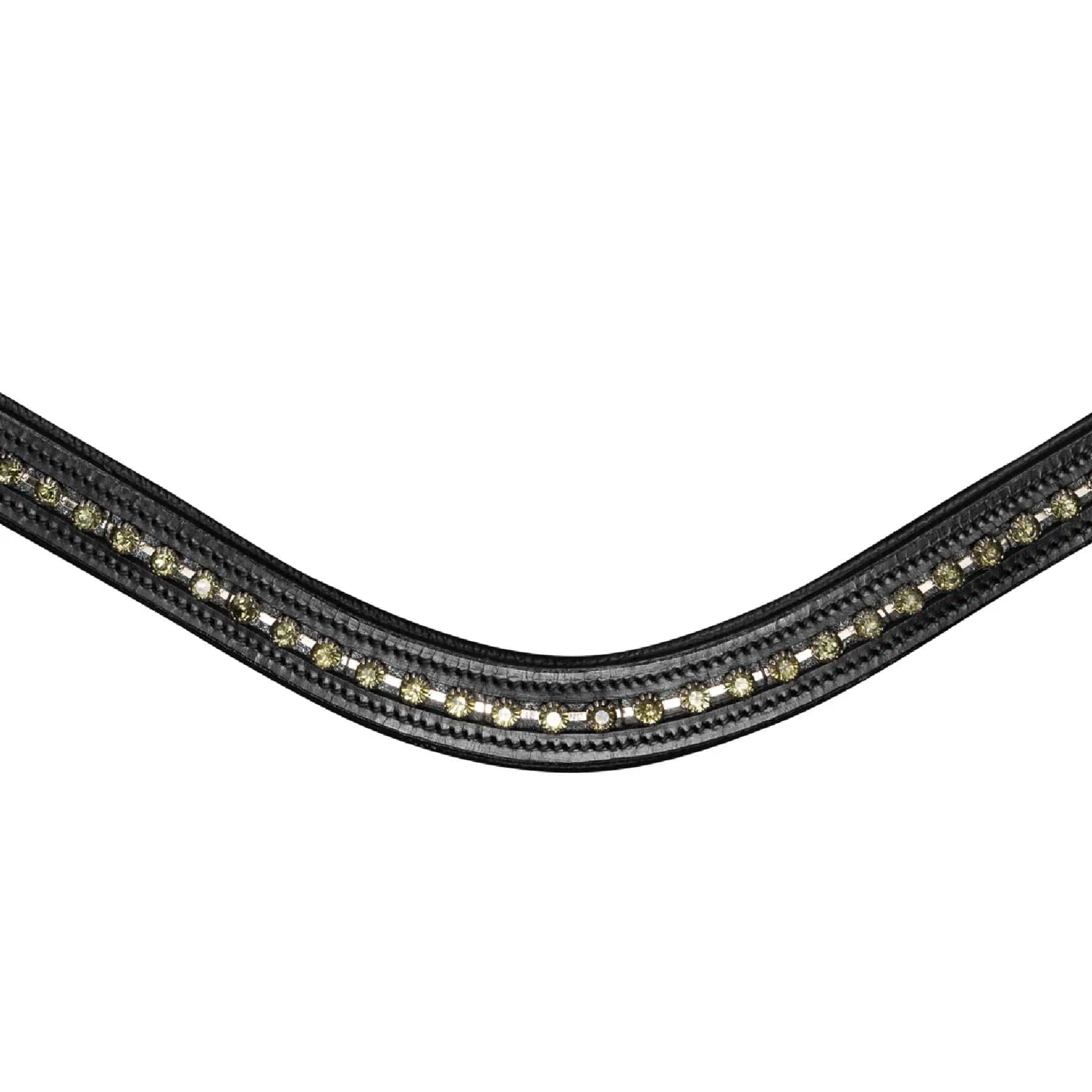 Das Stirnband ist geschwungen und mit einer edlen Strasskette verziert.