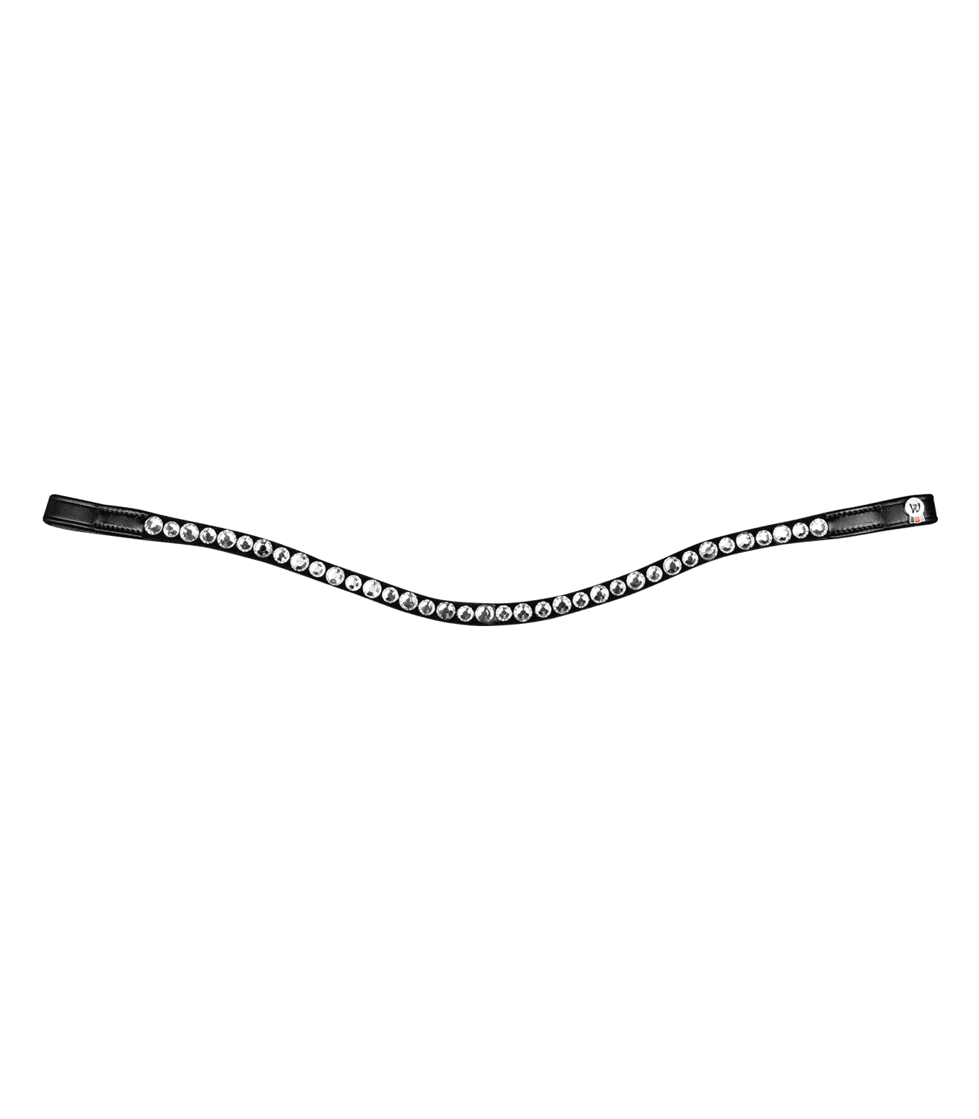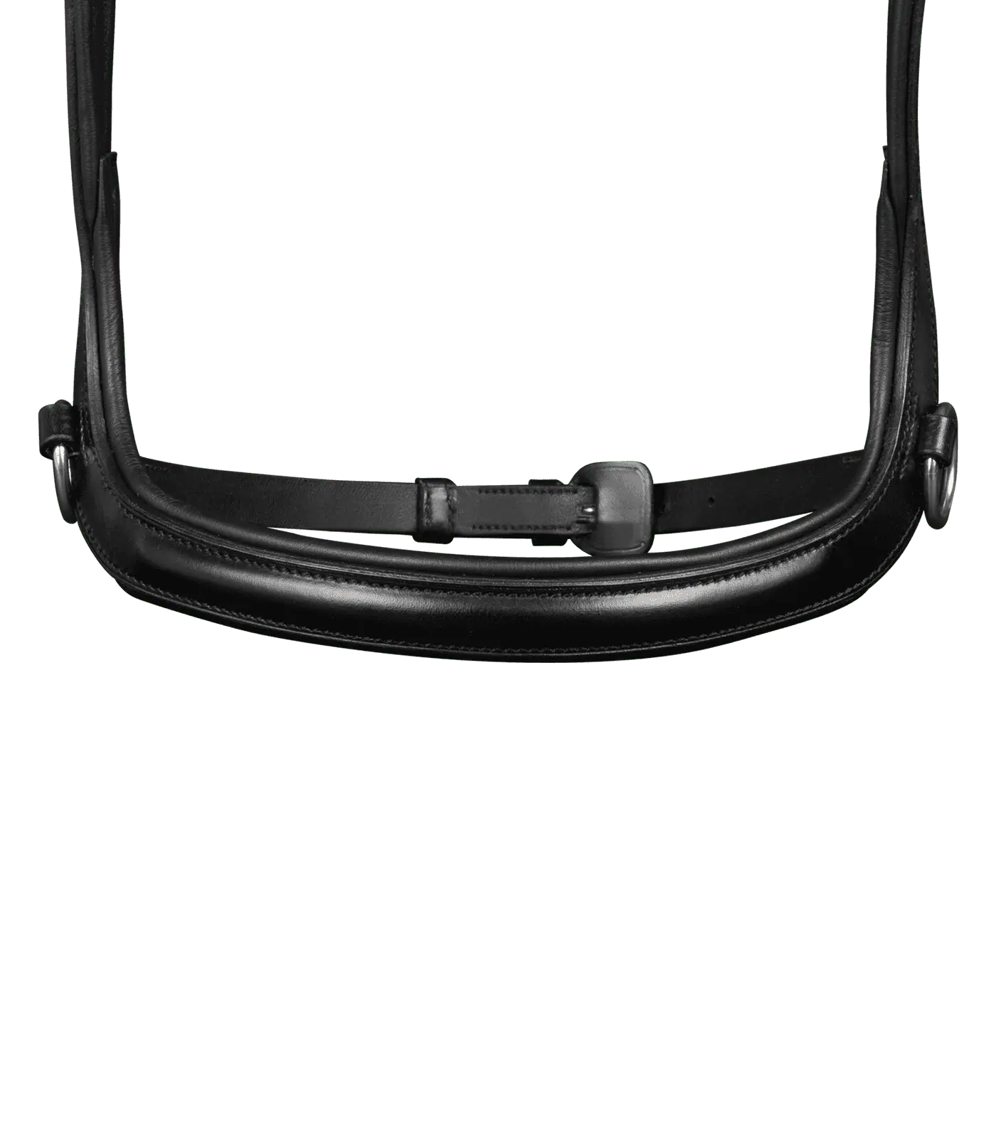 Der geschwungene Stirnriemen verleiht dem Zaum nicht nur ein elegantes Aussehen, sondern sorgt auch für eine optimale Passform und Druckverteilung auf die empfindliche Stirnregion.