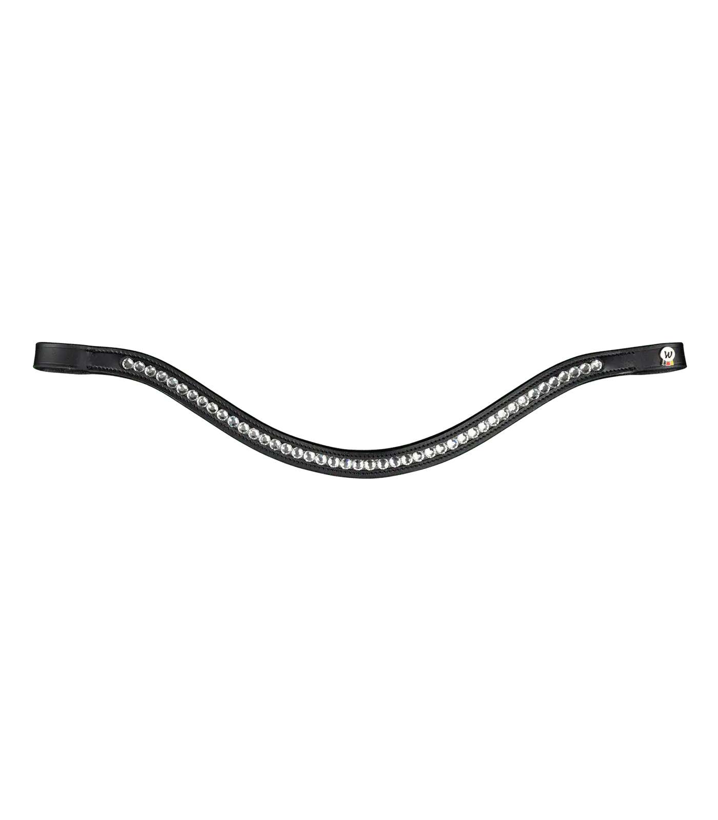 Das geschwungene Stirnband mit glänzenden Kristallen verleiht dem Trensenzaum einen eleganten Look. Die Verschnallung im Genickstück ermöglicht eine einfache und präzise Anpassung an die Kopfform deines Pferdes. Der Zaum ist perfekt für den täglichen Gebrauch und eignet sich sowohl für den Ausritt als auch für das Training.