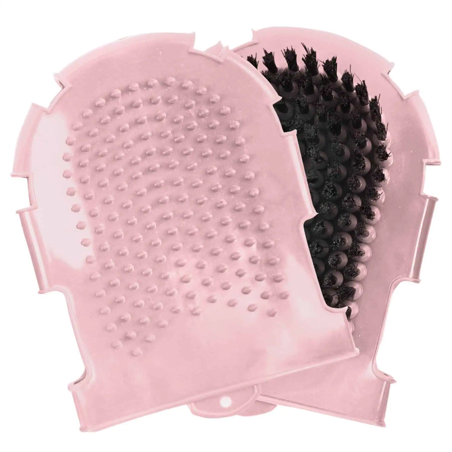 Eine Seite besteht aus Noppen, die andere Seite aus kräftigen, synthetischen Borsten.