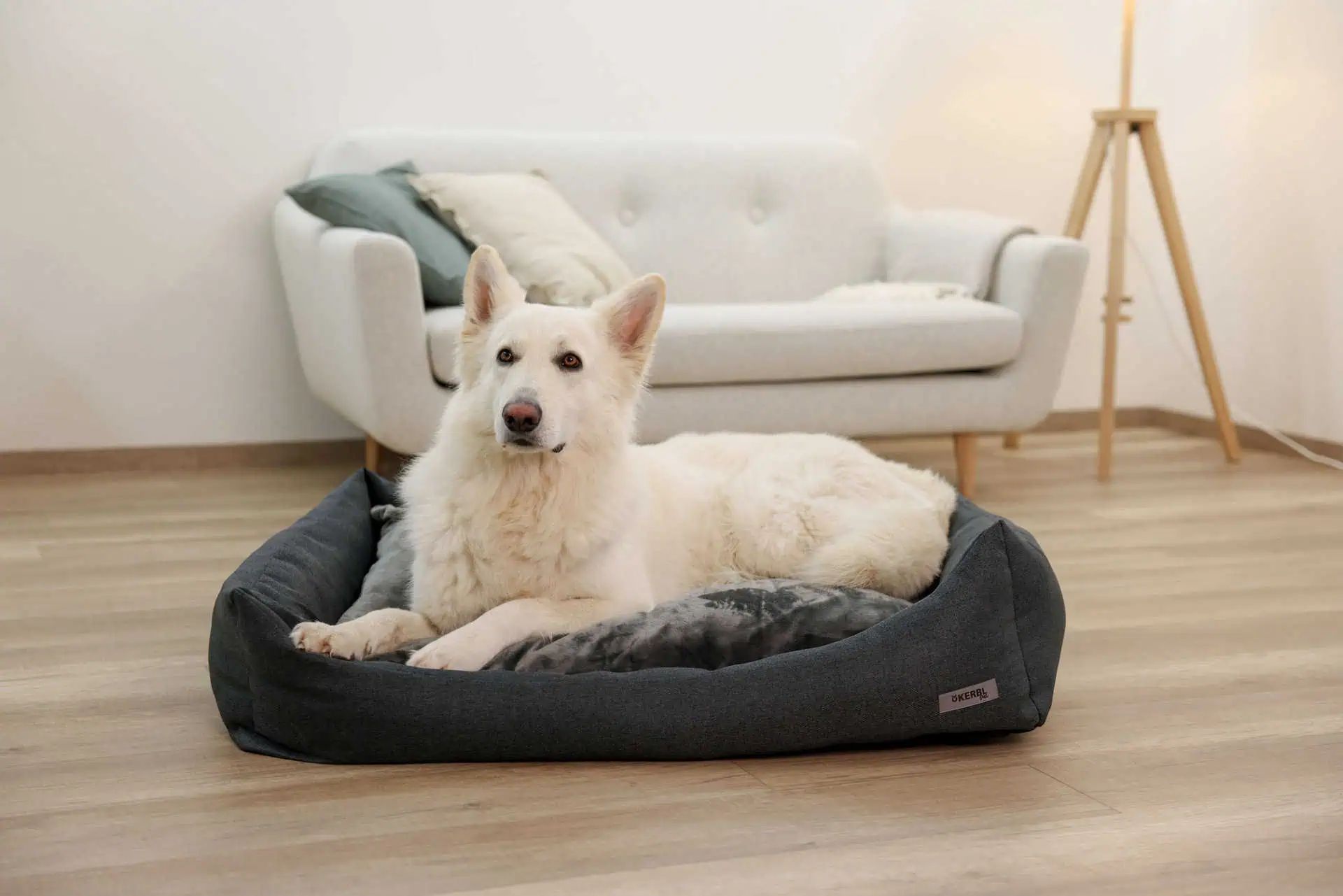 Das Kuschelbett Platin Ortho ist ein orthopädisches Kuschelbett für Hunde, das speziell für ältere und kranke Hunde mit Gelenk- oder Rückenproblemen entwickelt wurde. Dank des herausnehmbaren Wendekissens mit hochwertigen Memory-Schaumflocken wirkt es druckentlastend und bietet höchsten Liegekomfort. Die dicke Polsterung hält Bodenkälte hervorragend ab und sorgt für ein wohliges Gefühl beim Hund. Das Wendekissen verfügt über unterschiedliche Bezüge: samtweicher Kurzhaarplüsch auf der einen und robuster Webstoff auf der anderen Seite, wodurch es vielseitig einsetzbar ist.