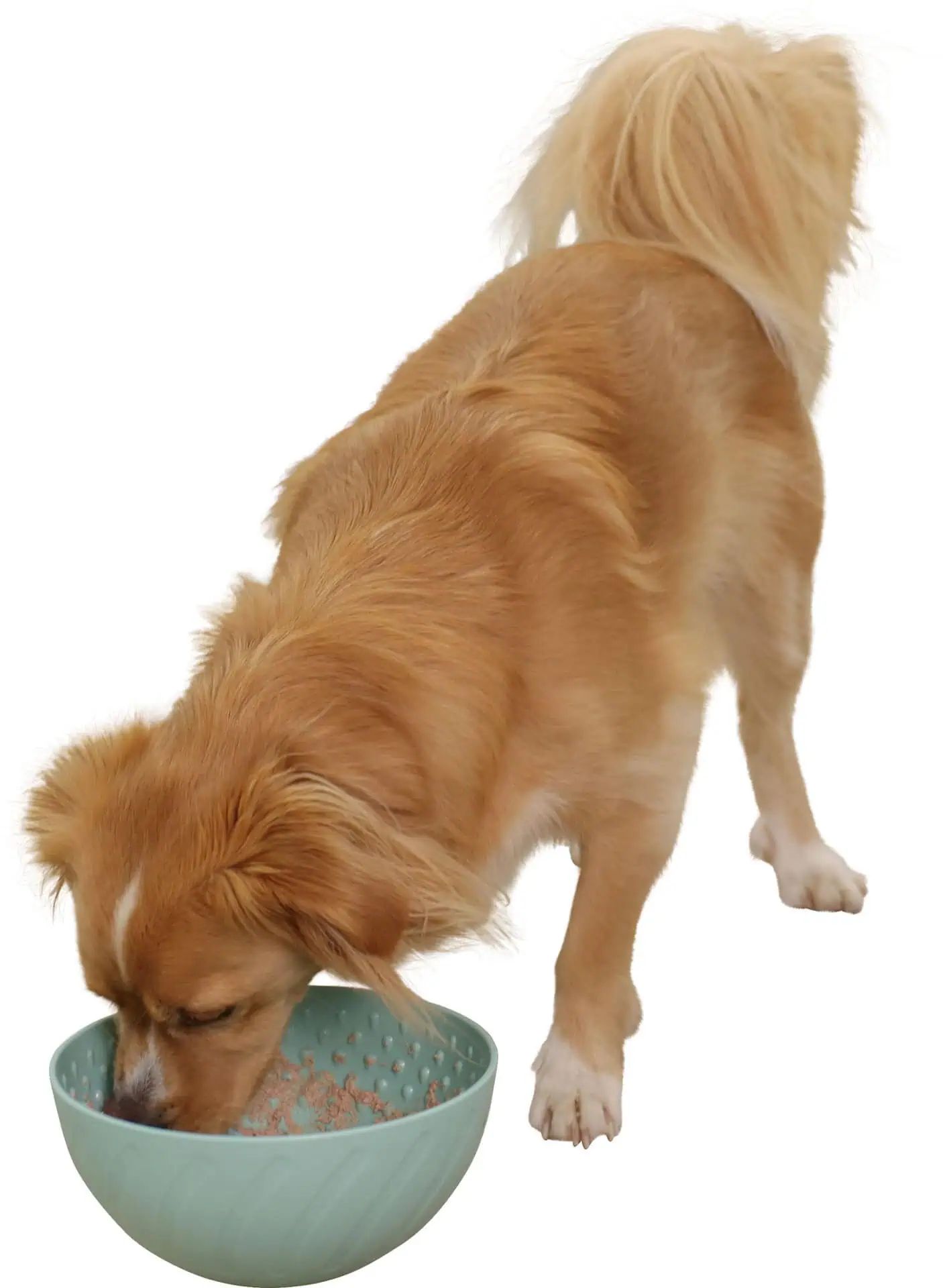 Der Schlecknapf ist türkis, spülmaschinenfest und hat einen Durchmesser von 20,5 cm bei einer Höhe von 11 cm. Gefertigt aus hochwertigen Materialien, ist er sicher und langlebig für den täglichen Gebrauch. Ideal für Hunde und Katzen, die eine spielerische und zugleich beruhigende Fütterungsmethode benötigen.