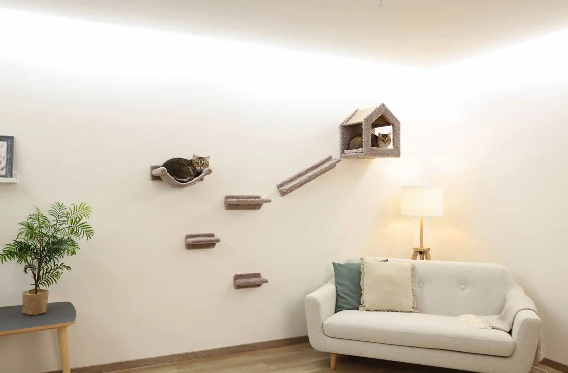 Die weiteren Teile der Kletterwand sind mit weichem Softplüsch aus 100 % Polyester bezogen, was für zusätzlichen Komfort sorgt. Das platzsparende Design eignet sich besonders für Katzenbesitzer mit kleineren Wohnungen oder begrenztem Raum. Die Montage ist dank der inklusive Anleitung und dem Montagematerial kinderleicht.