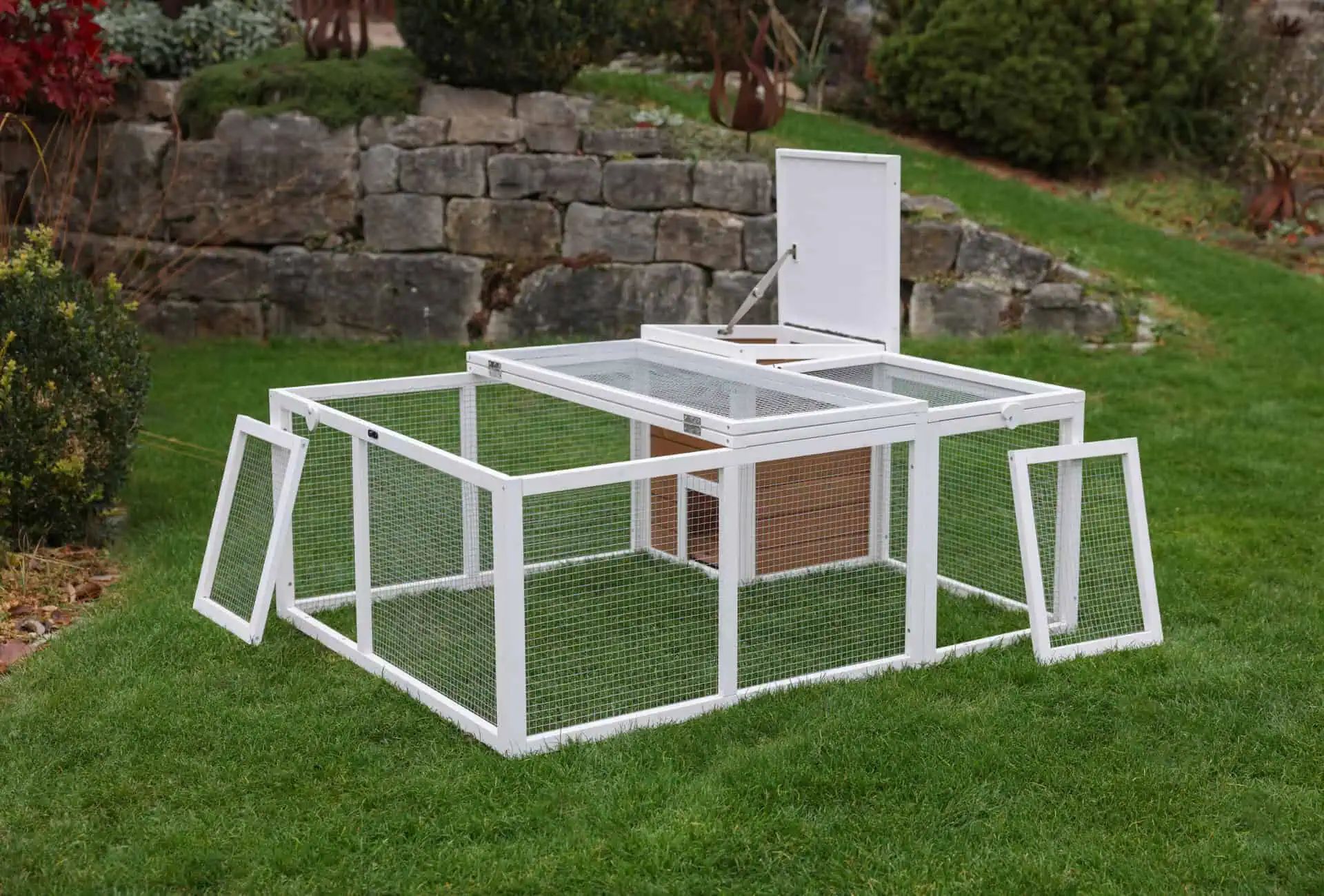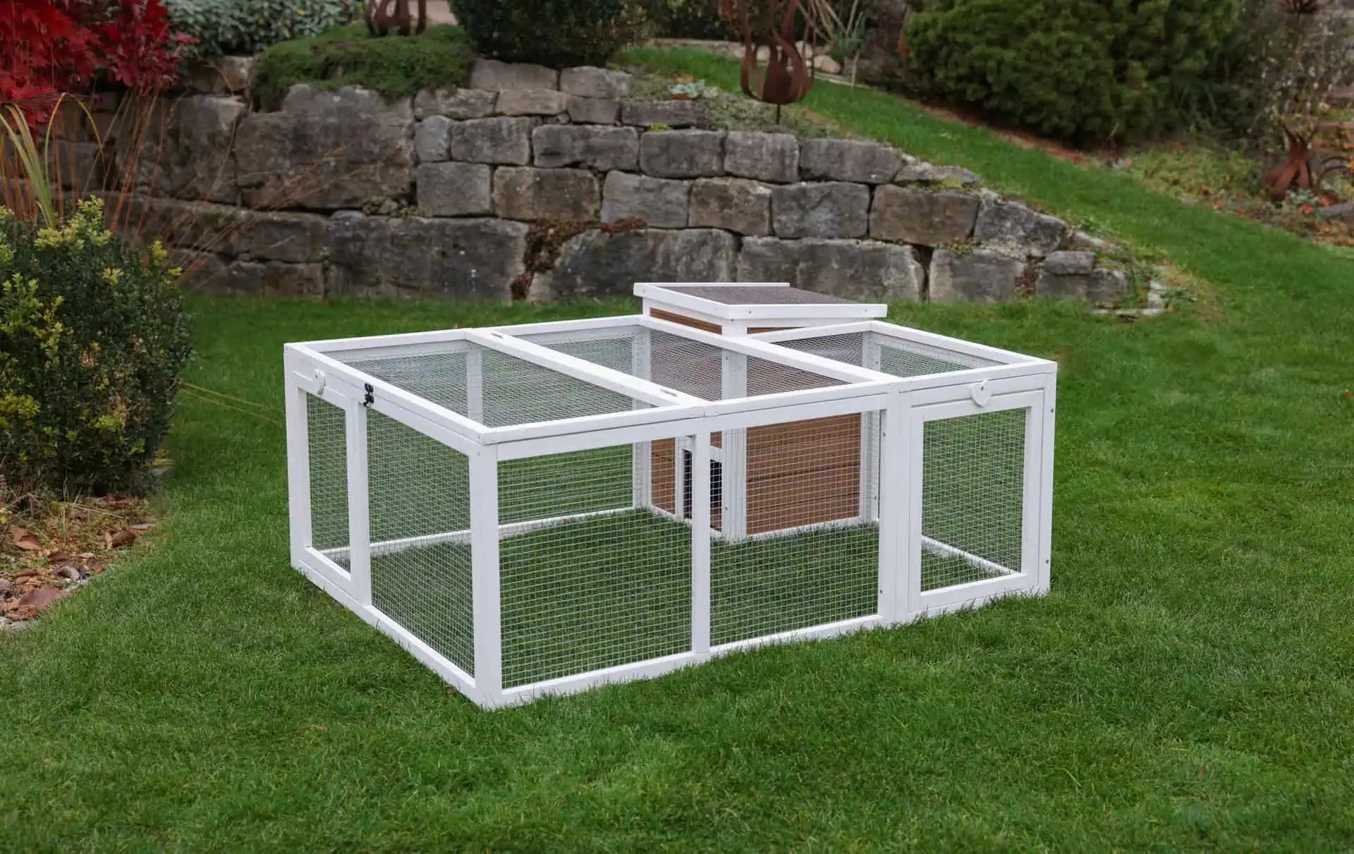 Freilaufgehege mit integriertem Unterschlupfhaus für Ihre Tiere
