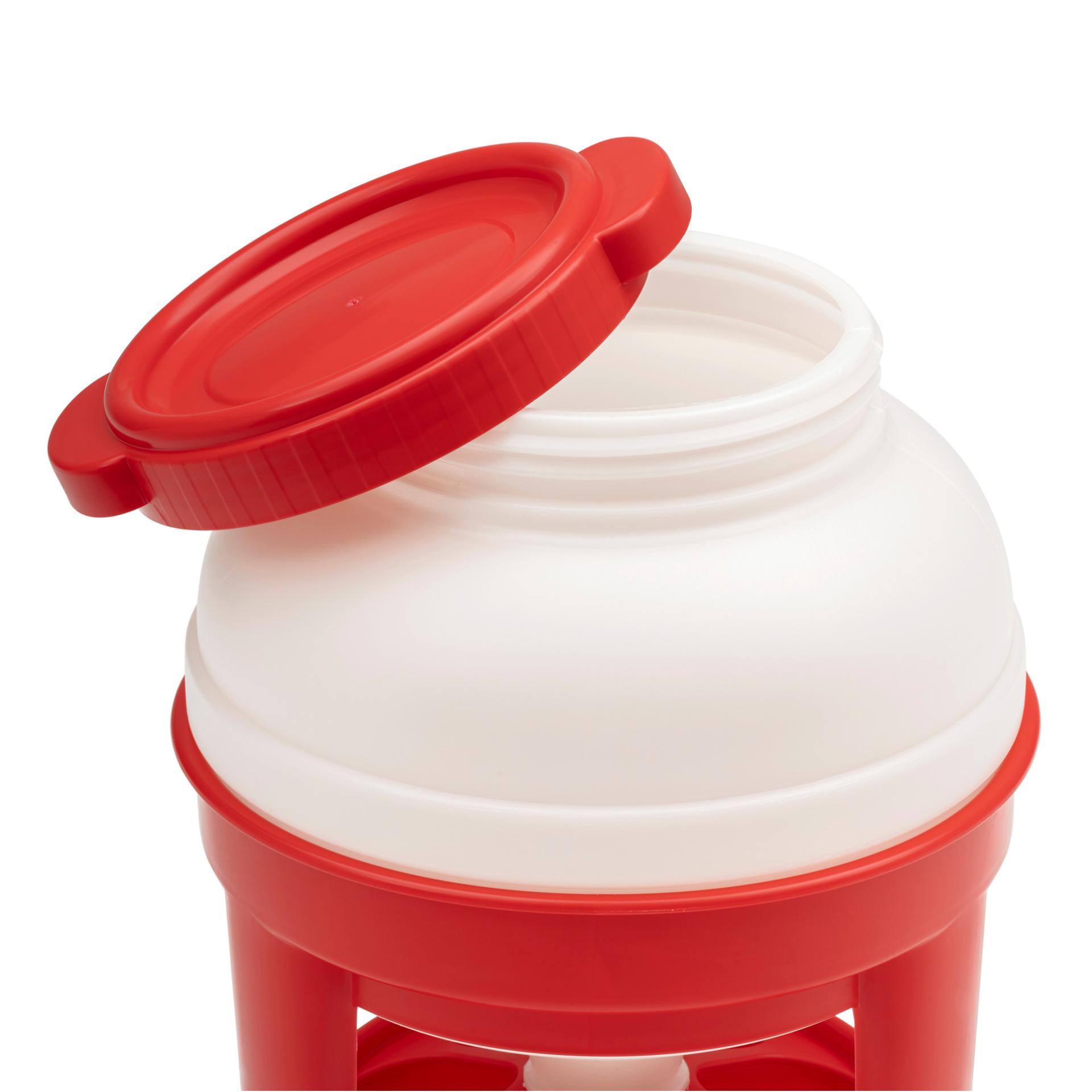 Der Futterspender ist aus hochwertigem Kunststoff gefertigt, was ihm eine bemerkenswerte Langlebigkeit verleiht. Er eignet sich besonders für Hühnerhalter, die Wert auf eine praktische und effektive Futteraufbewahrung legen, aber auch für andere Geflügelarten kann dieser Automat genutzt werden. Die Kombination aus Materialien und Design macht diesen Futterautomat zu einem unverzichtbaren Begleiter in deinem Geflügelstall.