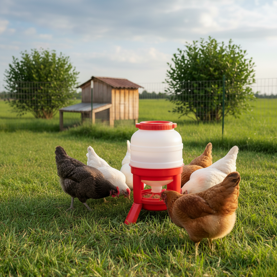 Der Futterautomat eignet sich hauptsächlich für Hühner, kann jedoch auch für andere Geflügelarten verwendet werden.