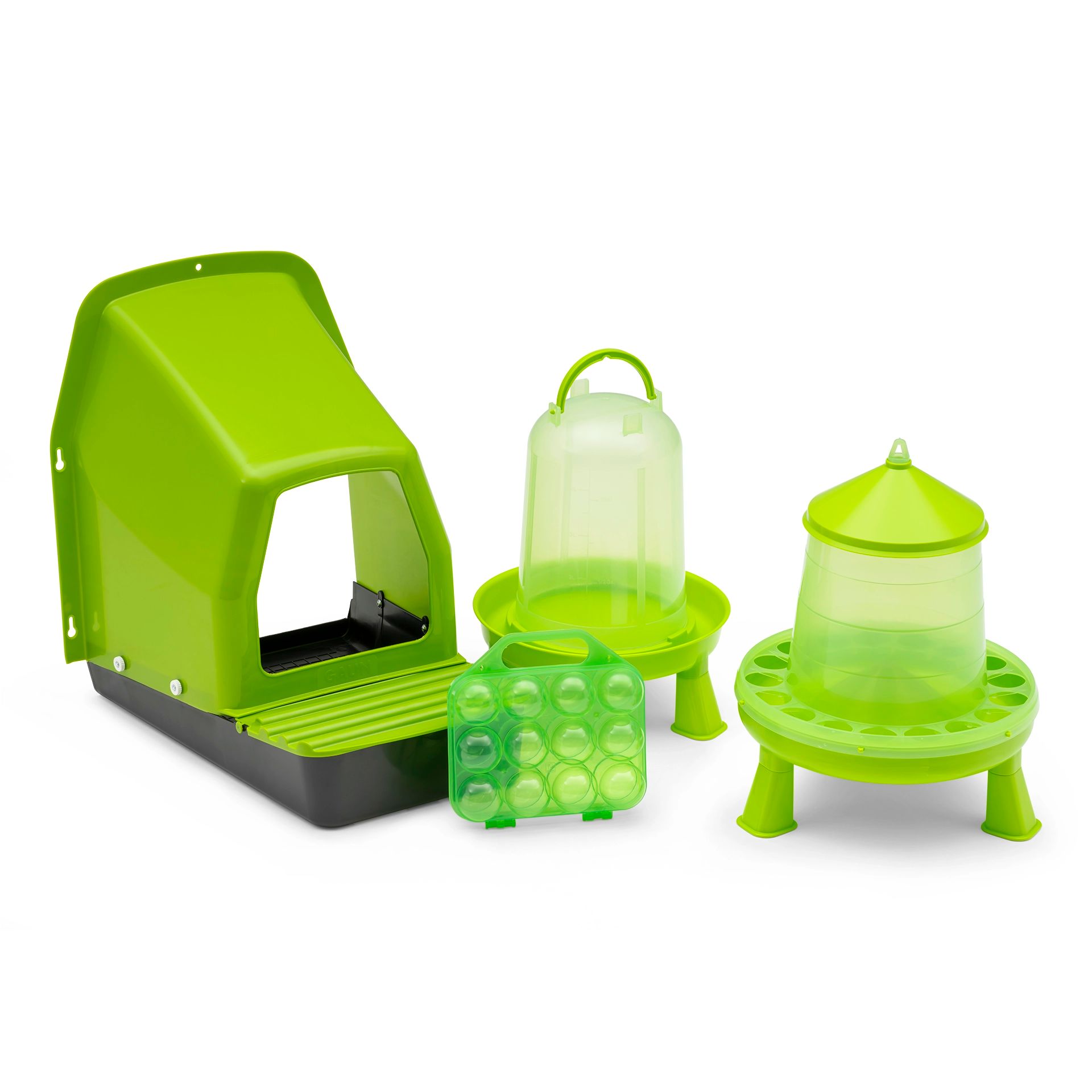 - Enthält Futterautomat, Hühnertränke, Legenest und Eier-Aufbewahrungsbox