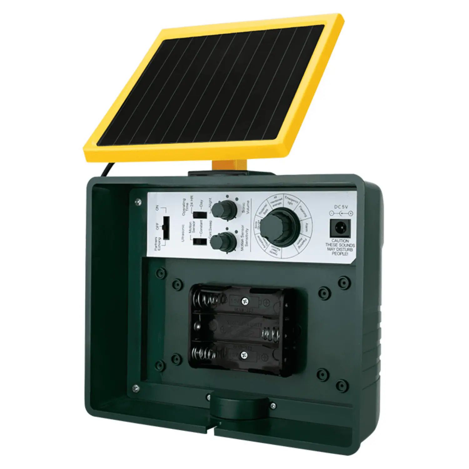 Der Ultraschall Tiervertreiber Solar Plus wird hauptsächlich durch Solarenergie betrieben und speichert die Energie in wiederaufladbaren Batterien. Alternativ kann er auch mit einem 6V-Adapter aufgeladen werden.