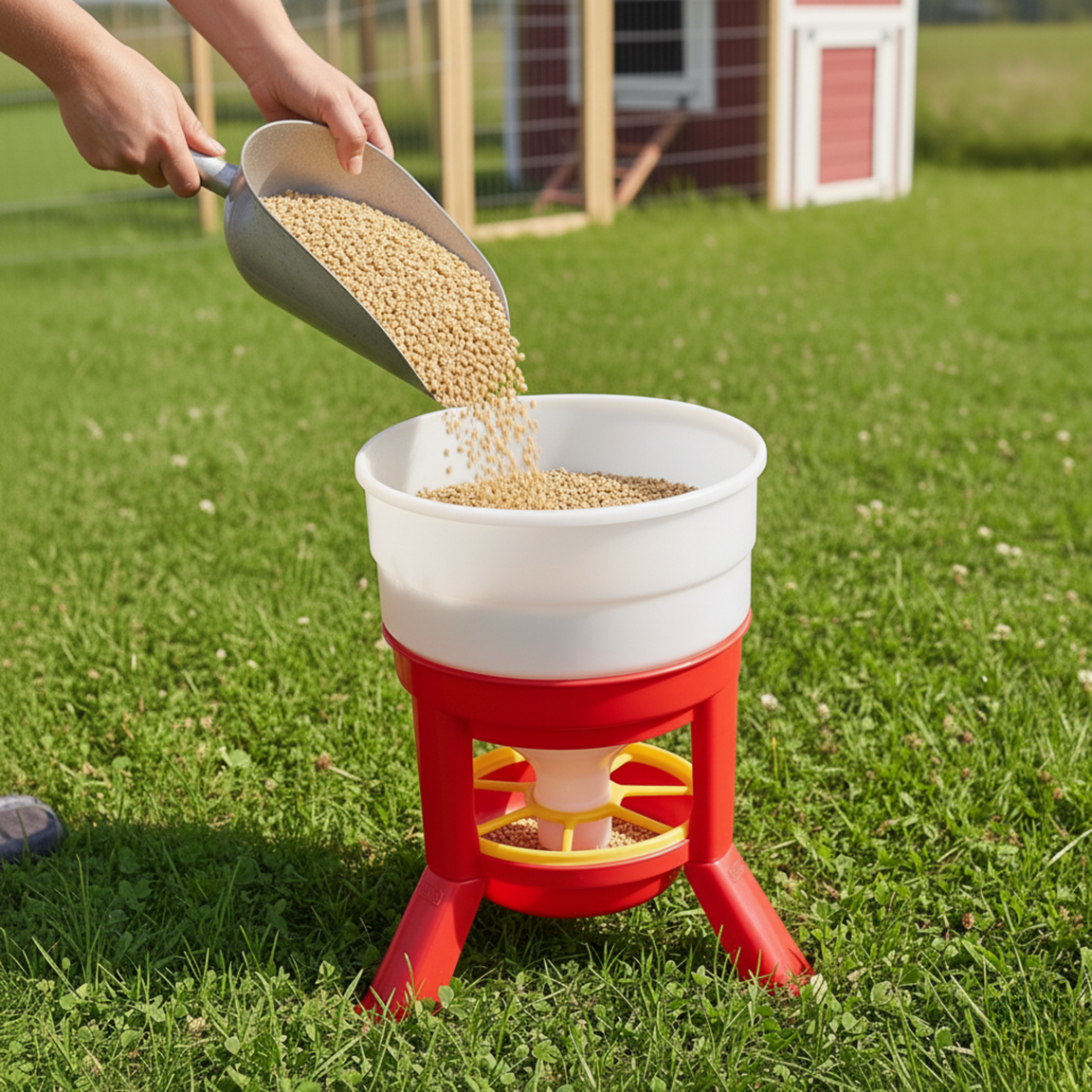 Dieser Futterautomat ist ideal für Geflügelhalter, die nach einer effizienten Fütterungslösung suchen. Egal ob in großen Ställen oder auf offenen Flächen, der Futterspender optimiert die Nahrungsversorgung für eine große Anzahl von Vögeln über einen längeren Zeitraum. Wenn du den Komfort und die Effizienz deiner Geflügelhaltung steigern möchtest, ist dieser Futterautomat die perfekte Wahl.