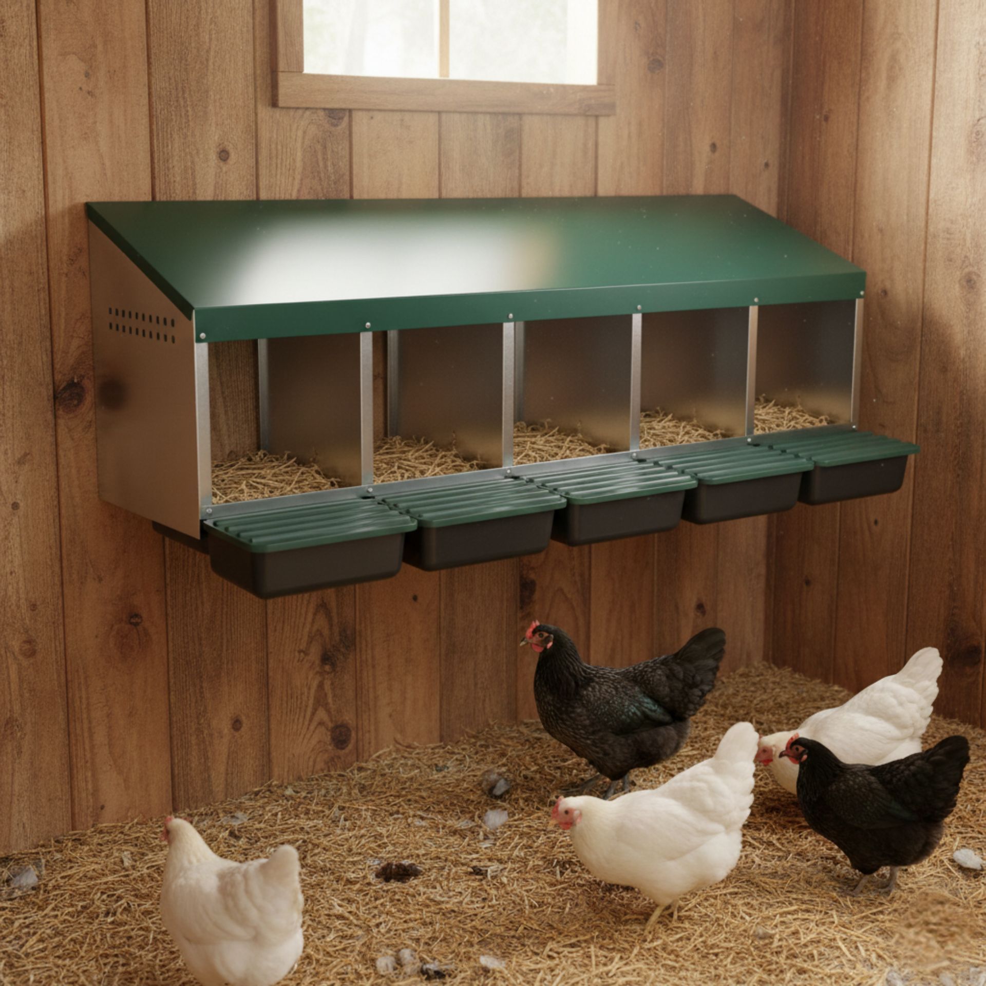 Ideal geeignet für Hobby-Geflügelhalter und kleine Geflügelfarmen, die besonderen Wert auf hygienische und sichere Eiablage legen. Durch die einfache Wandmontage wird Platz gespart und eine schnelle Installation ermöglicht. Das robuste Material aus verzinktem Metall und Kunststoff verspricht eine lange Lebensdauer und ist leicht zu reinigen.