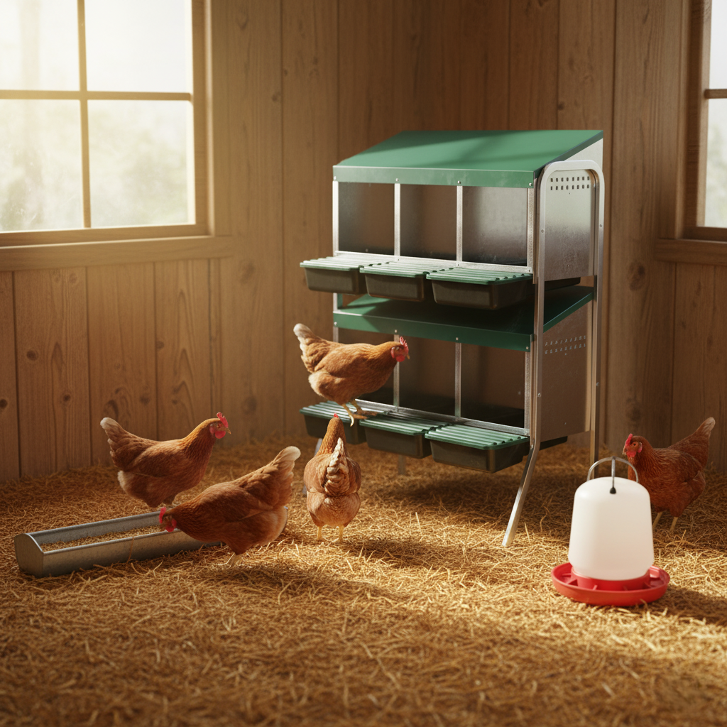 Die Verwendung von hochwertigem wetterbeständigem Metall sorgt dafür, dass das Etagen-Legenest nicht nur langlebig, sondern auch pflegeleicht ist. Damit schaffst du nicht nur einen praktischen, sondern auch einen sicheren Rückzugsort für deine Hühner. Ideal für alle, die Wert auf artgerechte Haltung legen und ihren Tieren ein angenehmes Umfeld bieten möchten.
