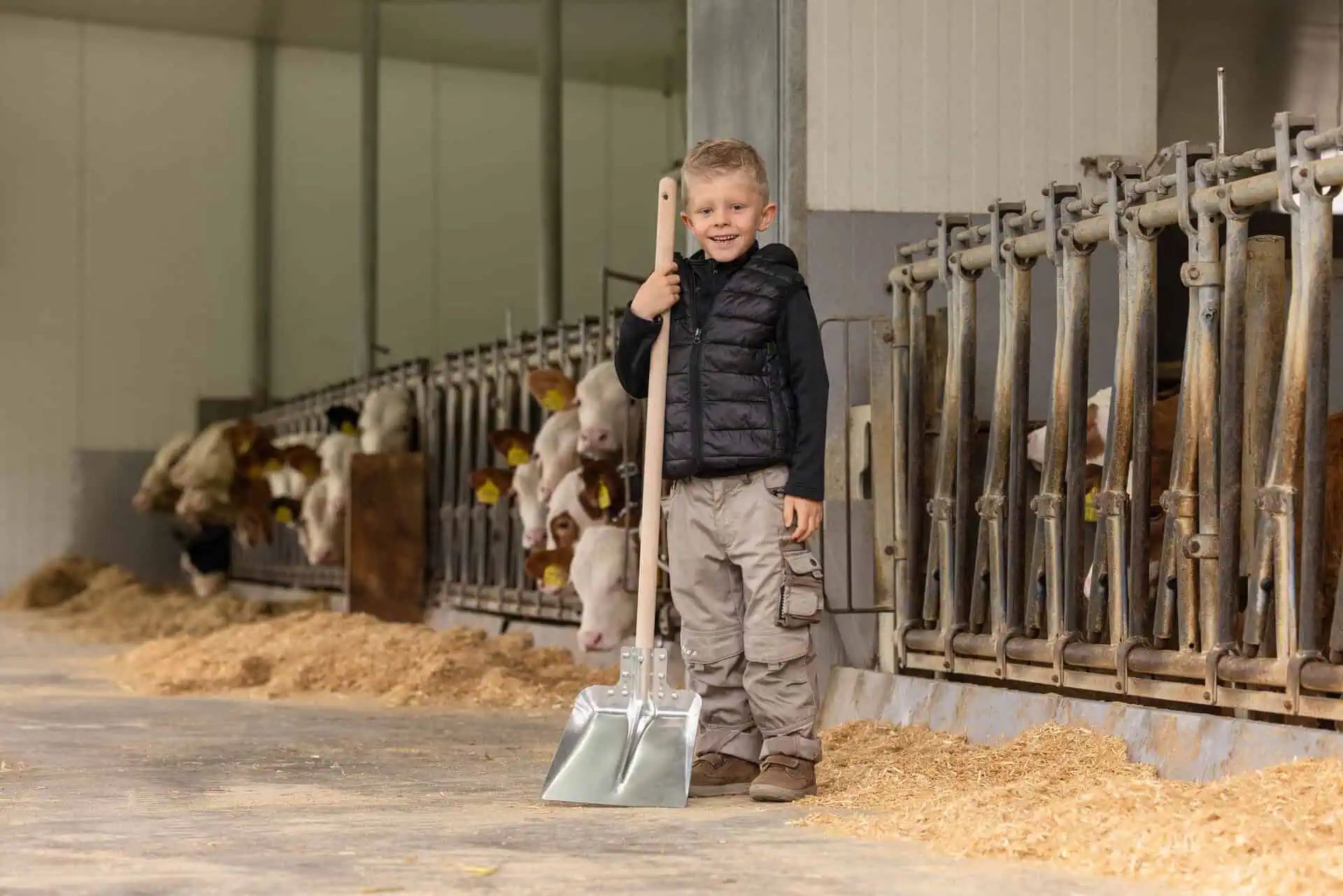 Die robuste Kinder-Siloschaufel aus leichtem Aluminium mit ergonomischem Holzstiel ist ideal für Kinder ab 5 Jahren geeignet. Durch das kindgerechte Design eignet sie sich gut zum Schaufeln von Silage und für leichte Arbeiten im Stall - ein praktisches Werkzeug für kleine Helfer auf dem Hof.