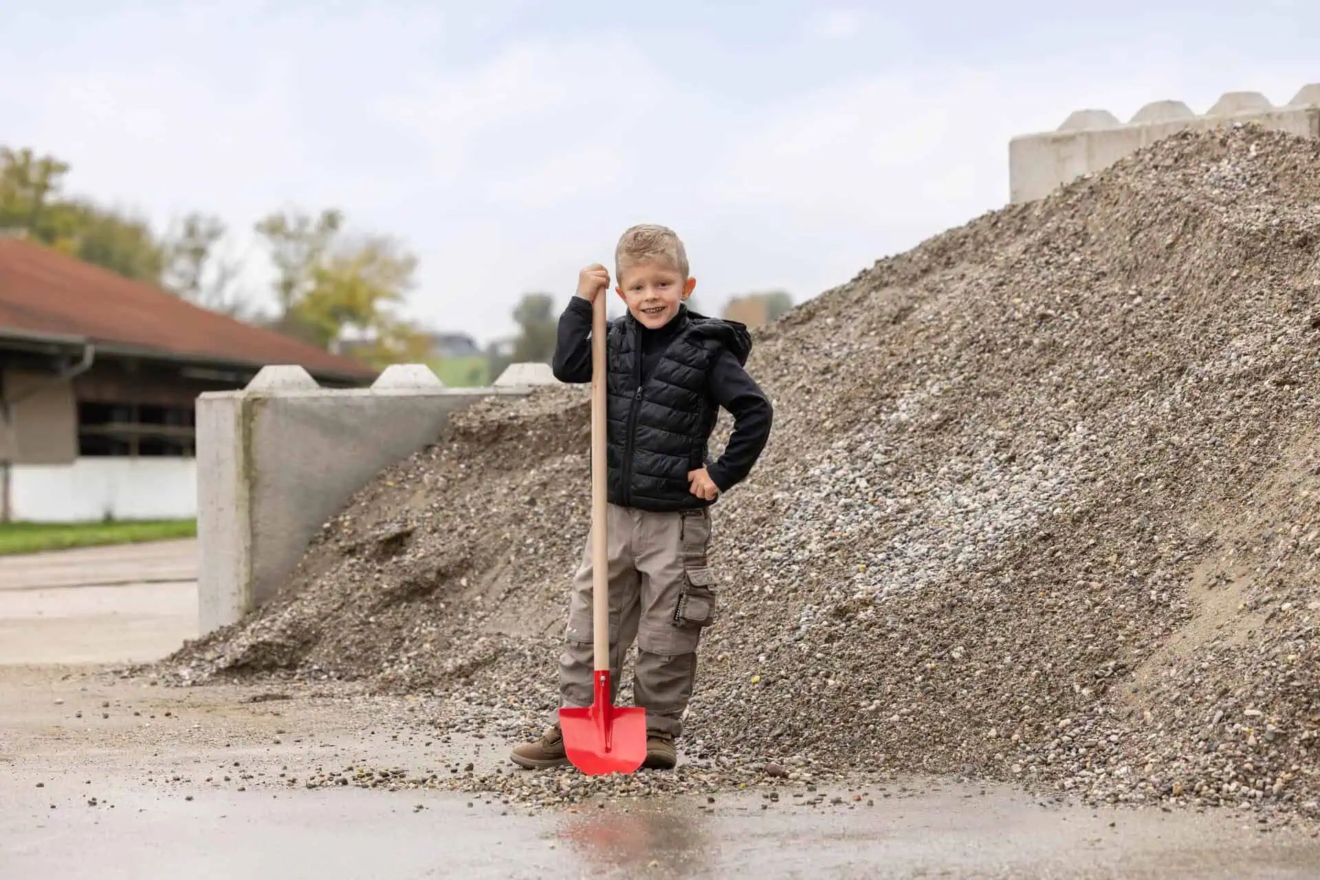 Die robuste Kinder-Schaufel aus Metall mit ergonomischem Holzstiel ist ideal für Kinder ab 5 Jahren geeignet. Mit kindgerechtem Design ermöglicht sie sicheres Schaufeln von Sand und leichte Stallarbeiten – der ideale Begleiter für kleine Landwirte!
