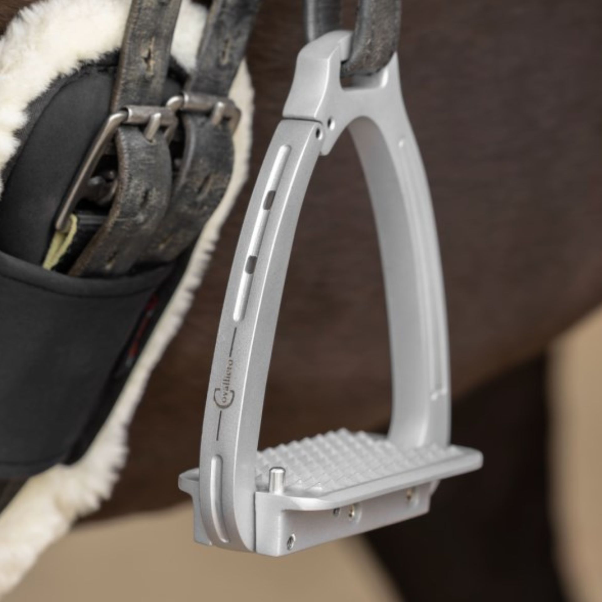 - mit klappbarem Seitenbügel, der schnell in Situationen, wie z. B. einem Sturz, den Fuß des Reiters freigibt