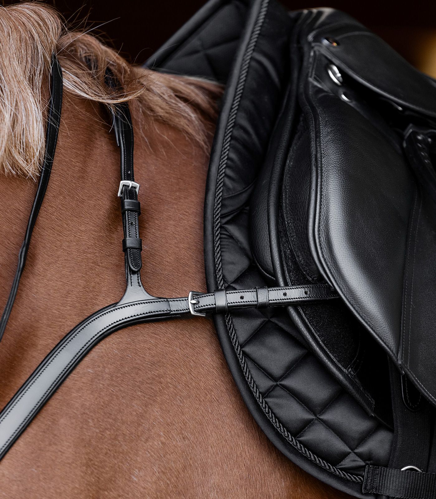 Der anatomische Schnitt garantiert uneingeschränkte Bewegungsfreiheit für die Schulter deines Pferdes. Gleichzeitig sorgt es für einen sicheren Halt des Sattels und maximalen Komfort während des Reitens.