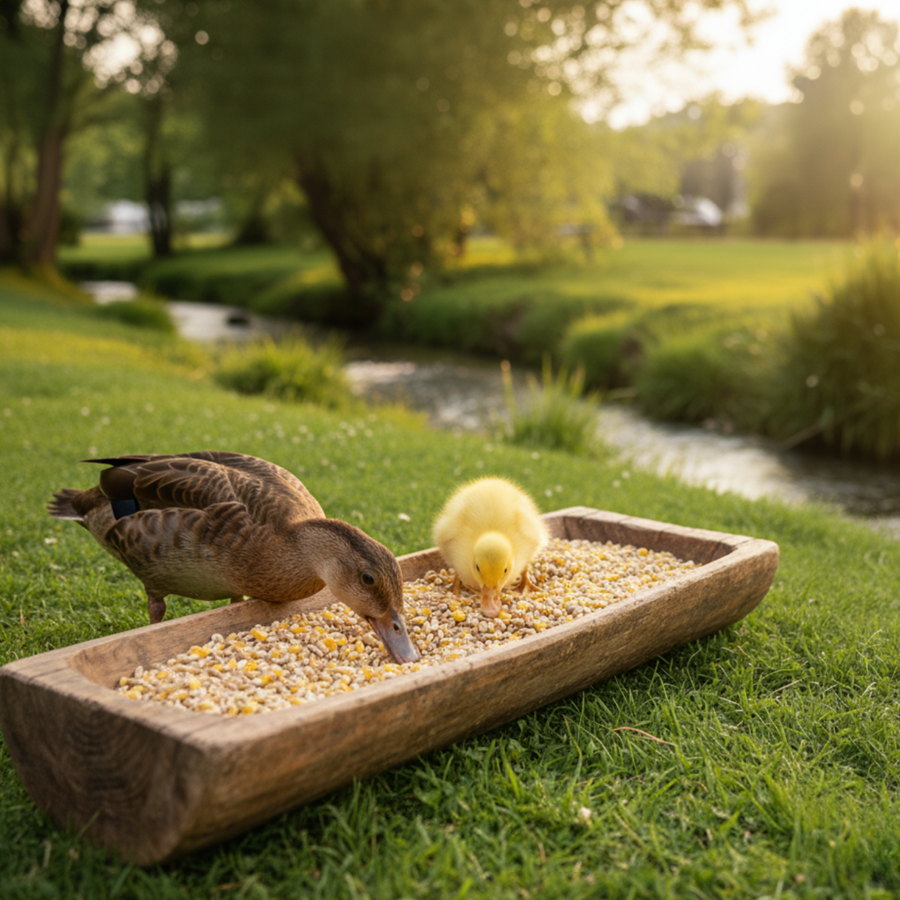 Du kannst das Futter zur freien Entnahme anbieten, damit deine Enten und Gänse immer Zugang zu frischem Futter haben.