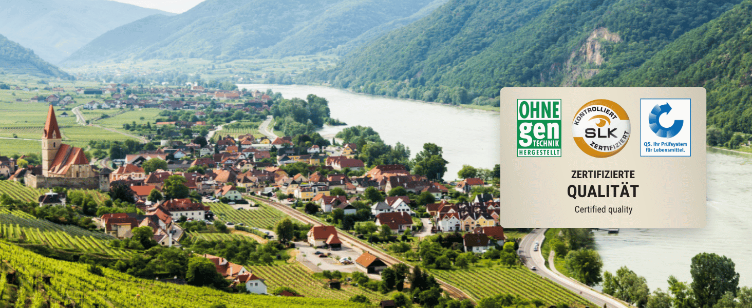 Als Familienunternehmen Leimüller stellen wir in Neumarkt am Wallersee seit über 400 Jahren frisches und natürliches Tierfutter her. Wir stehen für absolute Transparenz und nutzen nur hochwertige, regionale Rohstoffe, die unsere strenge Qualitätsprüfung durchlaufen. Unser Versprechen: Das Futter ist garantiert staub- und gentechnikfrei, was die SLK GmbH kontrolliert und zertifiziert. Viele Produkte sind für das AMA-Gütesiegel tauglich und unsere QS-Zertifizierung garantiert Ihnen die Einhaltung strengster Qualitätsstandards.