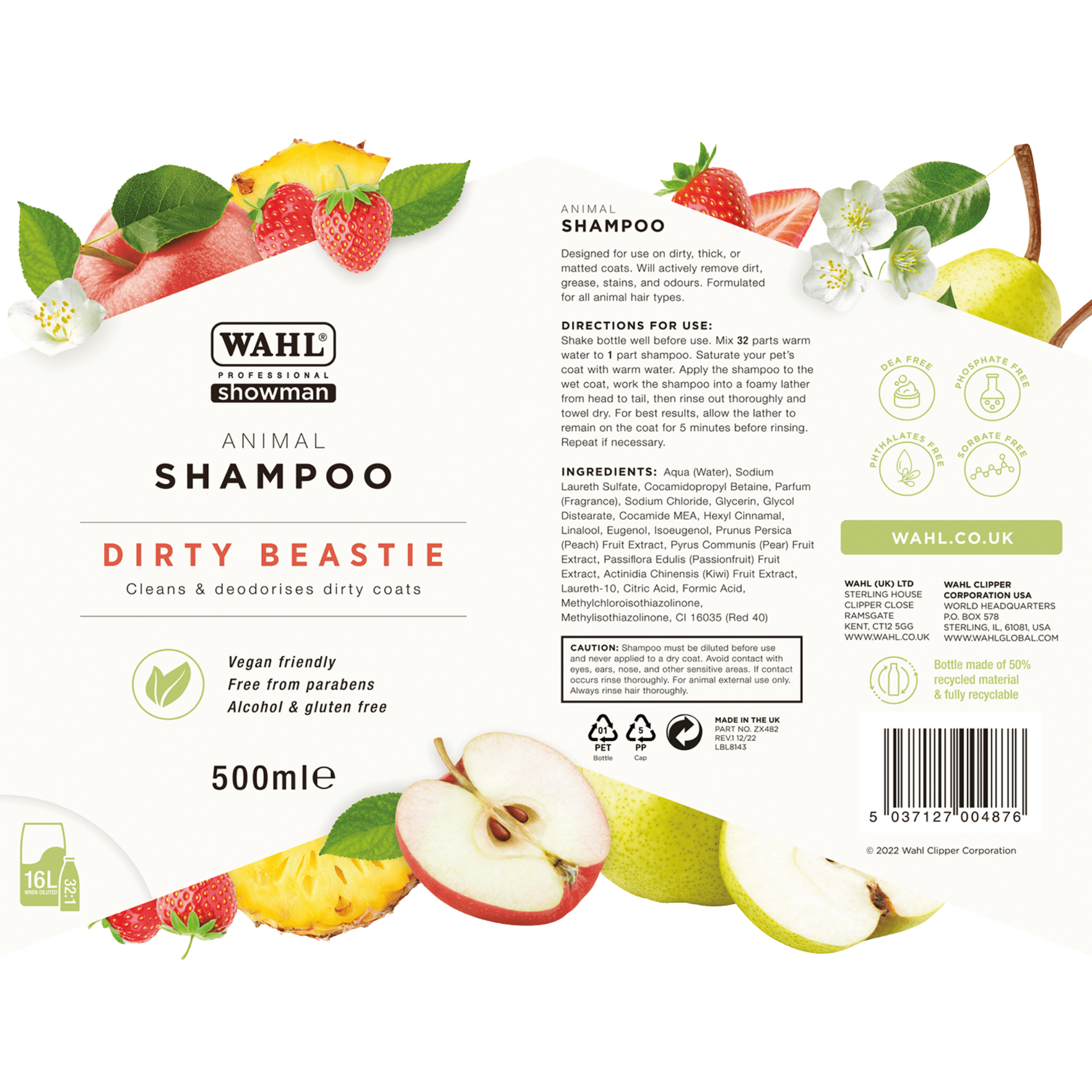 Das Wahl Dirty Beastie Hundeshampoo Konzentrat wurde speziell für die intensive Reinigung von extrem schmutzigem, dickem oder verfilztem Fell entwickelt. Der größte Vorteil dieses Produkts ist seine außergewöhnlich hohe Ergiebigkeit: Als 1:32 Super-Konzentrat lassen sich aus nur 500 ml Inhalt ganze 16 Liter anwendungsfertiges Shampoo mischen. Das macht es zur idealen, wirtschaftlichen Wahl für den regelmäßigen Gebrauch oder für professionelle Anwender.