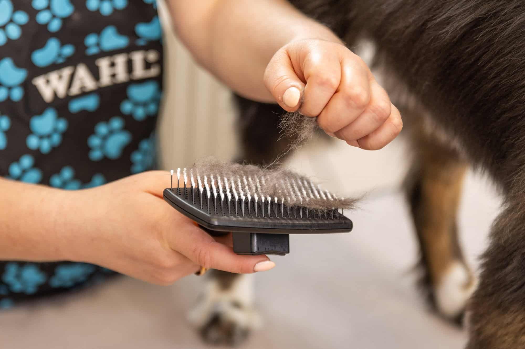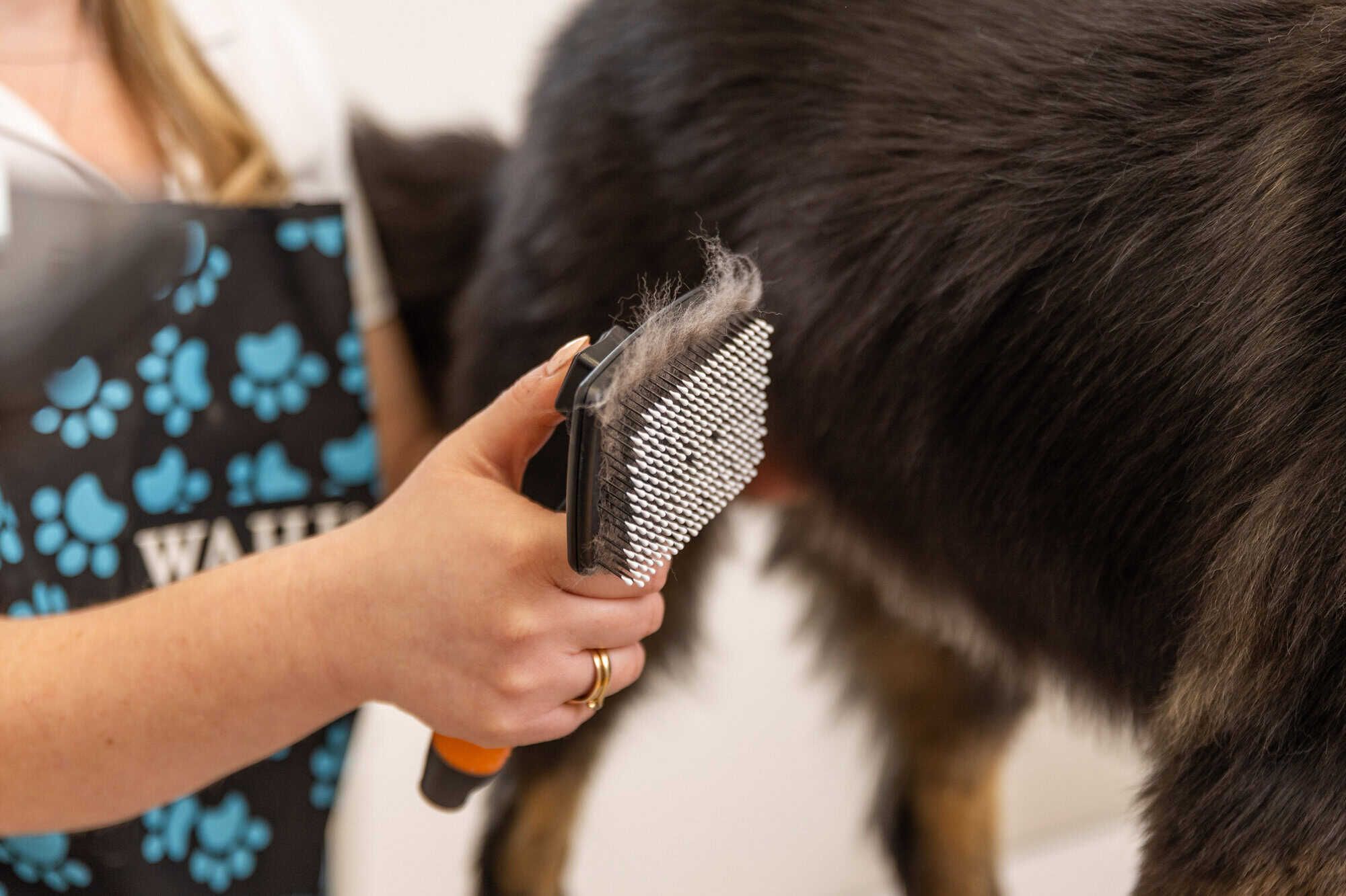 - Schonende Entfernung von losem Haar und Unterwolle